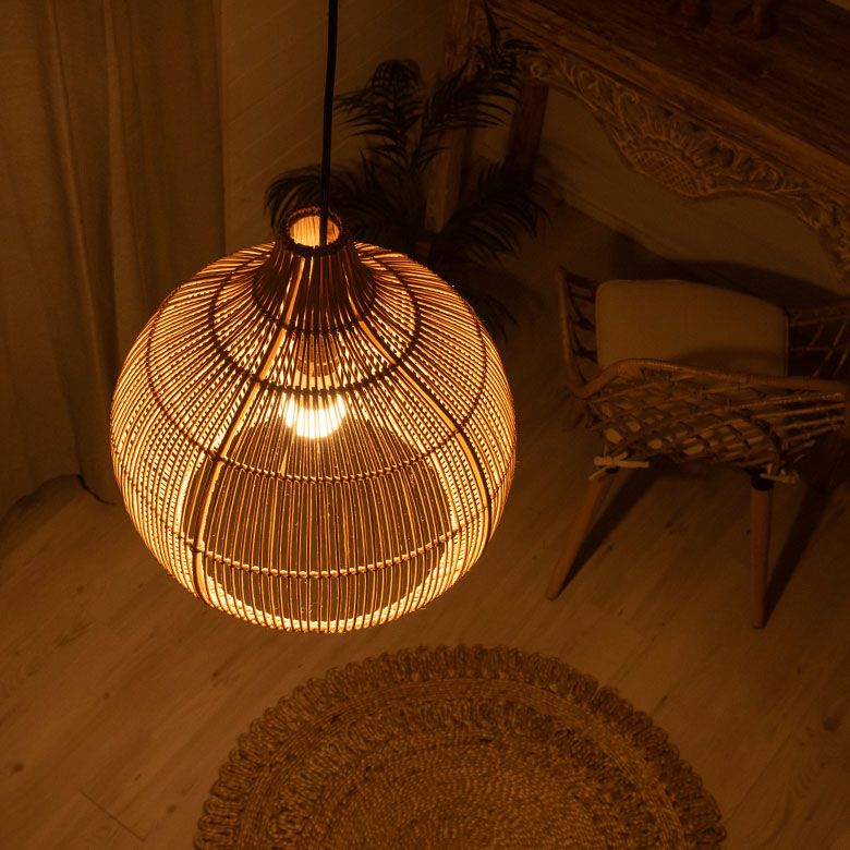 シェードランプ カフェ風 アジアン アジアン家具 アジアン雑貨 ペンダントランプ リゾート 照明 ライト ランプシェード ラタン製 ラウンドタイプ 1灯 口金E26 60W LED 対応 径35cm 高さ35cm [13866]【 天井照明 インテリア照明 ランプ シェード アジアンランプ ペンダント照明 照明器具 吊り下げ 和モダン おしゃれ バリ島 アジアン 雑貨 アジアン雑貨 】