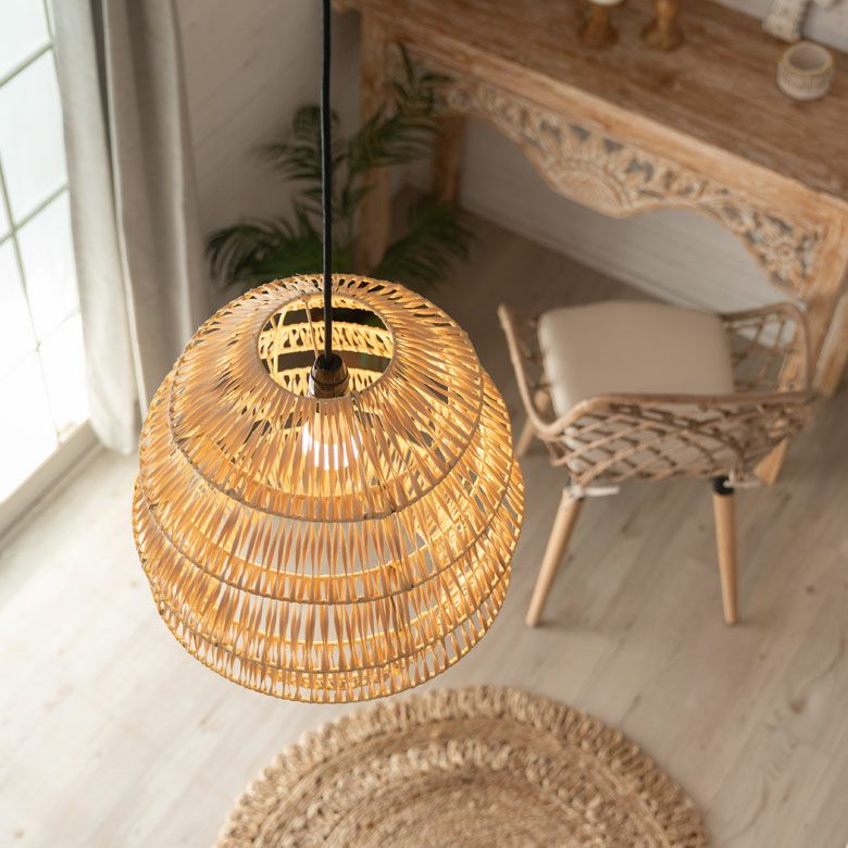 シェードランプ コースタル ナチュラル ペンダントライト 和室 ランプシェード ペンダントランプ 照明 ラタン 籐 ランプ ライト シェード 1灯 口金E26 60W LED 対応 [13935-na]【 天井照明 インテリア照明 シェード アジアンランプ ペンダント照明 吊り下げ 和モダン 照明器具 おしゃれ リゾート 北欧 アジアン雑貨 バリ島 】