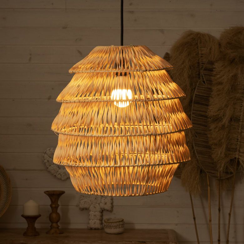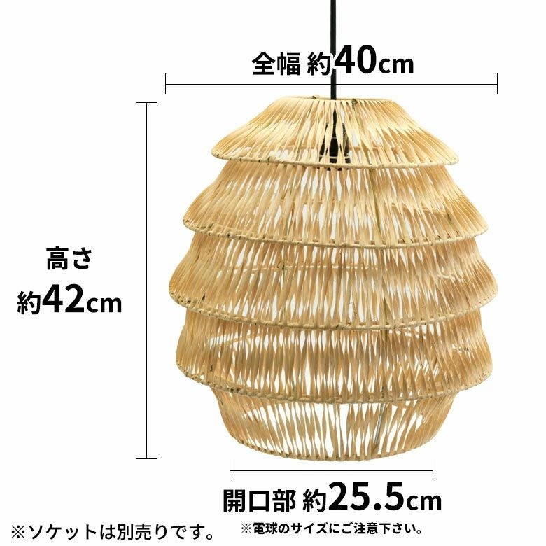 シェードランプ カフェ風 レストラン アジアン家具 アジアン雑貨 ペンダントランプ ランプシェード ランプシェイド ラフィア 1灯 口金E26 60W LED 対応 径40cm 高さ60cm [13919]【 天井照明 インテリア照明 照明 ペンダントライト アジアンランプ ペンダント照明 照明器具 吊り下げ 和モダン おしゃれ バリ島 リゾート アジアン 】