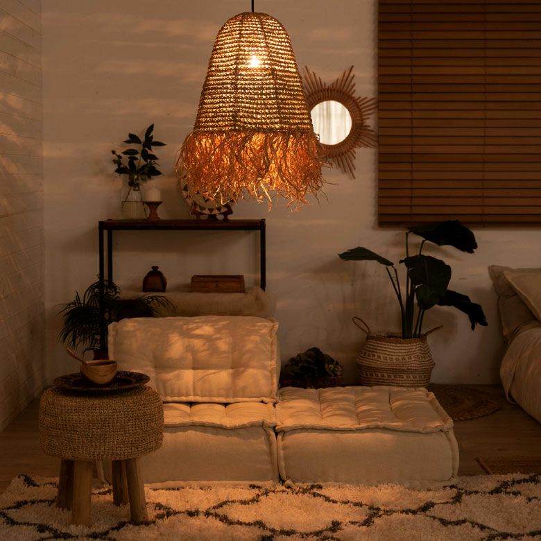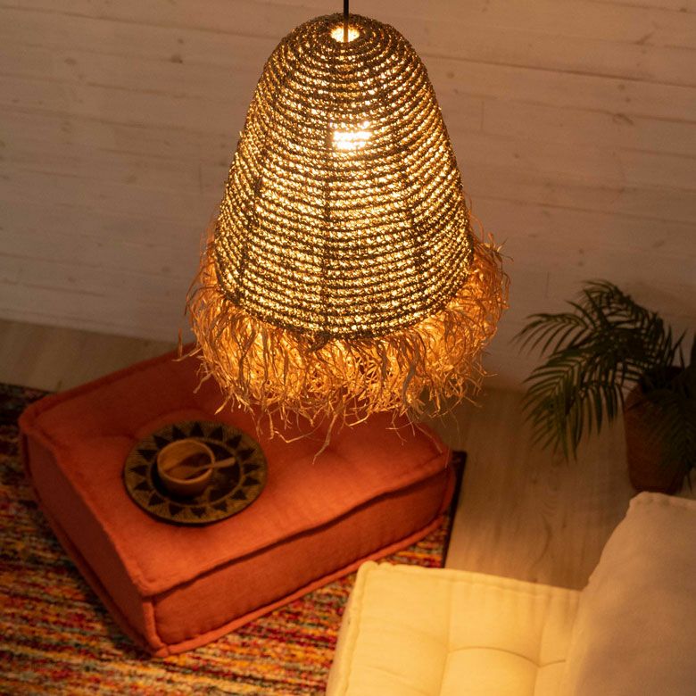 ビーチインテリア Boho シェードランプ カフェ風 アジアン家具 ペンダントライト ランプシェード ジュート 麻 1灯 口金E26 60W LED対応 約 径 41cm 高さ 45cm [51275]【 天井照明 インテリア 照明 ランプ シェード ライト ペンダント照明 照明器具 吊り下げ 和モダン おしゃれ リゾート ナチュラル アジアン 雑貨 バリ島 】