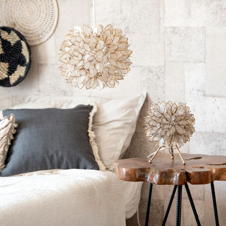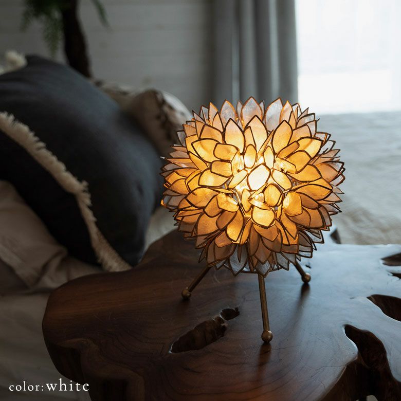 テーブルランプ 家具 卓上 フロアライト フロアランプ 寝室 テーブルランプ 照明 カピスシェル テーブルライト ホワイト グレー W 19cm D 19cm H 24cm [1394]【 おしゃれ 貝殻 貝 シェル アジアンライト インテリア デスク テーブル モダン ライト ランプ リビング テーブル照明 照明器具 間接照明 リゾート アジアン 雑貨 バリ 】
