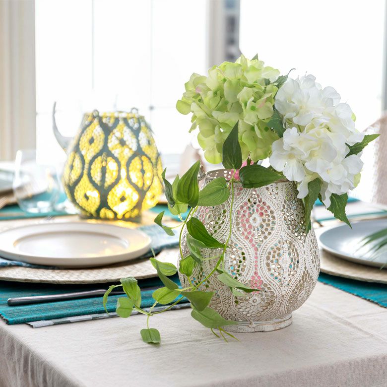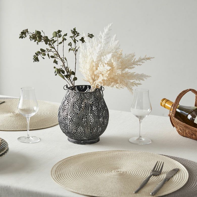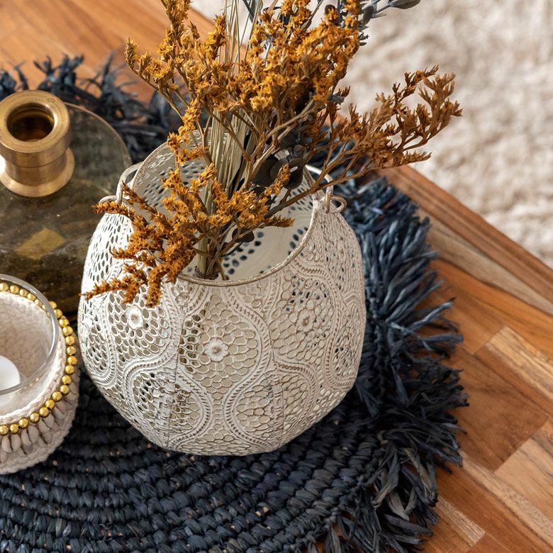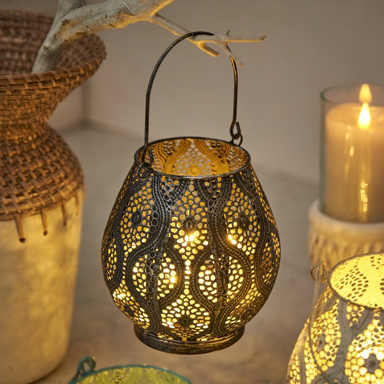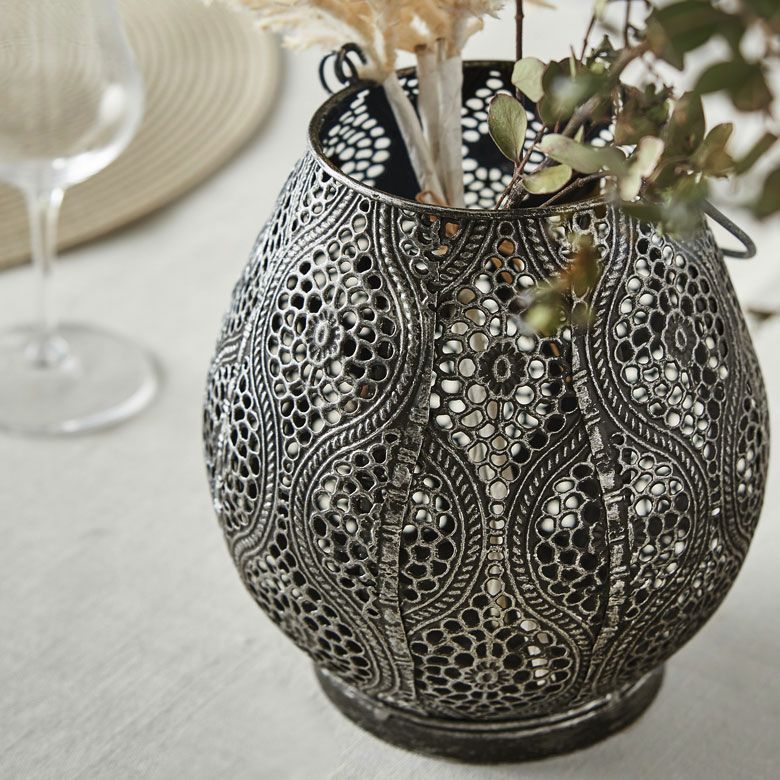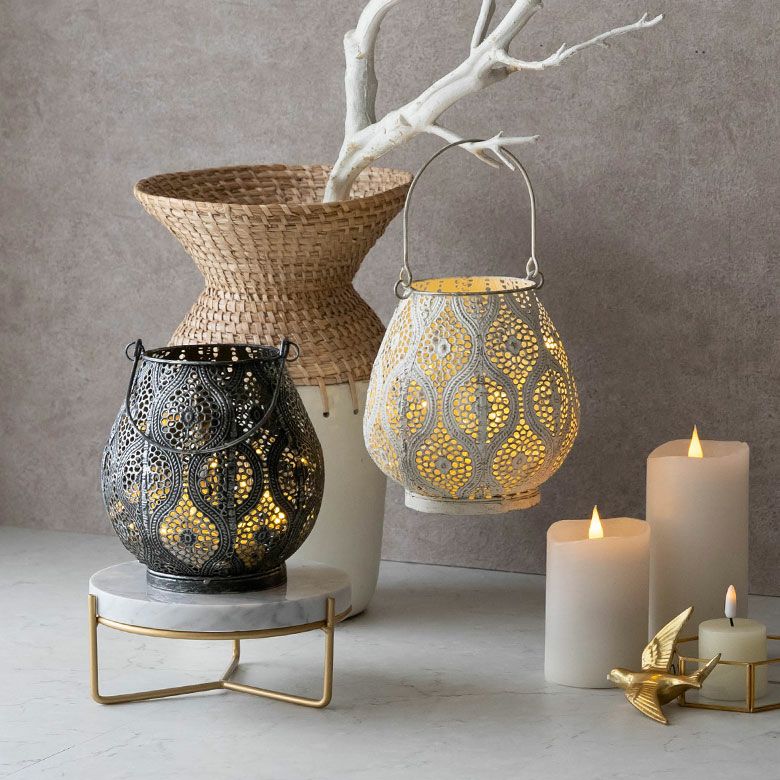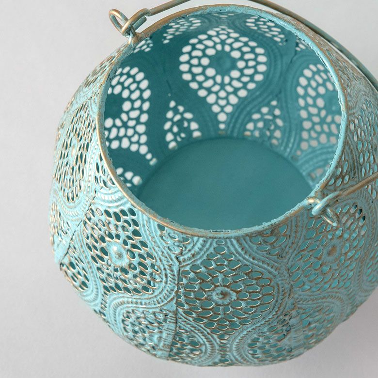 吊り下げ ハンドル付き スタンド 玄関 寝室 キャンドルホルダー キャンドル ランタン ライト アラベスク ブルー ホワイト ブラック W 約16.5cm D 約17cm H 約17.5cm ランプ 照明 フラワーベース フレンチ モロッカン アンティーク風 おしゃれ かわいい ホテル リゾート BOHO アジアン アジア 雑貨 [66982]