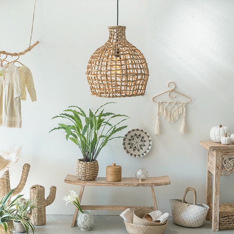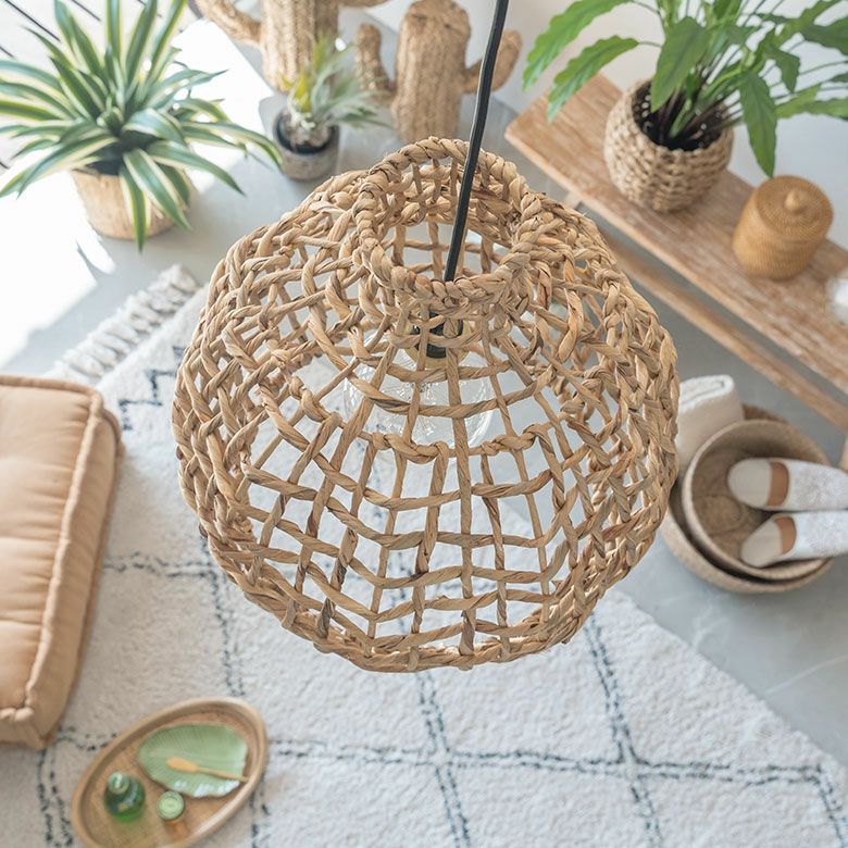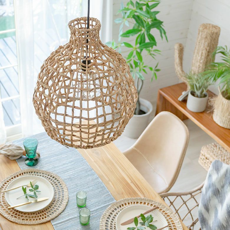 ランプ シェード ダイニング 寝室 店舗 ペンダントランプ ランプシェード ペンダントライト 照明 ウォーターヒヤシンス 1灯 口金E26 60W LED対応 約 径 42cm H 45cm [51287]【 天井照明 インテリア ライト ペンダント 照明 照明器具 吊り下げ リビング おしゃれ リゾート ナチュラル バリ アジアン 雑貨 】