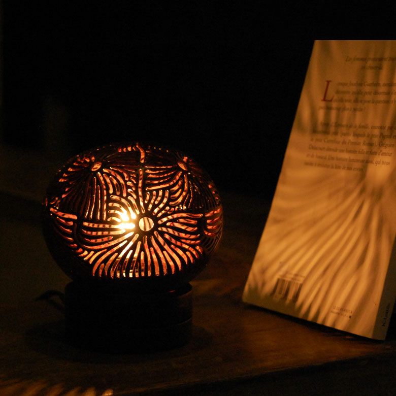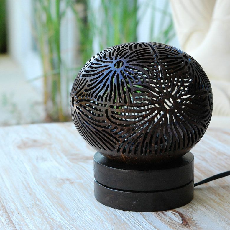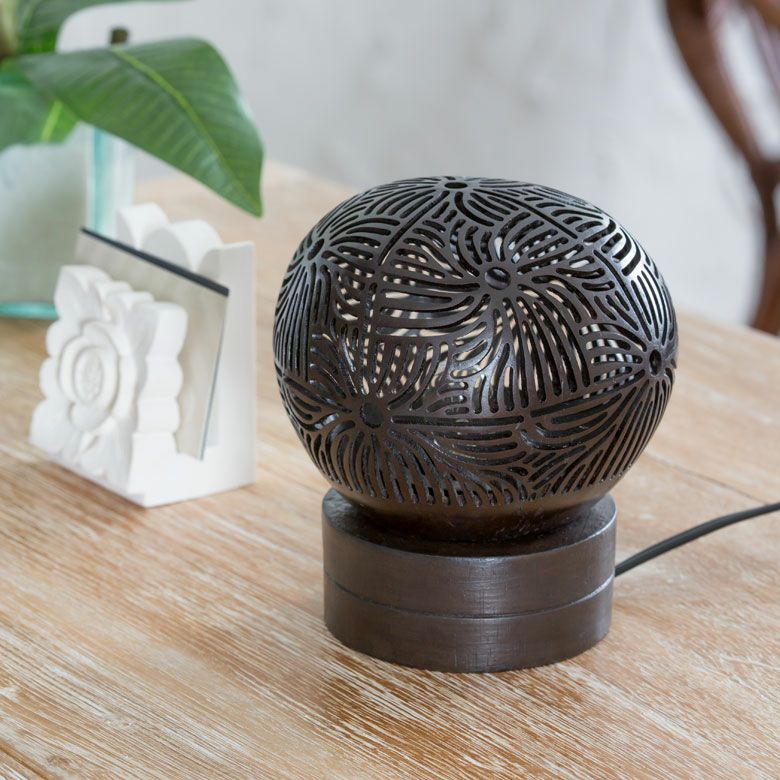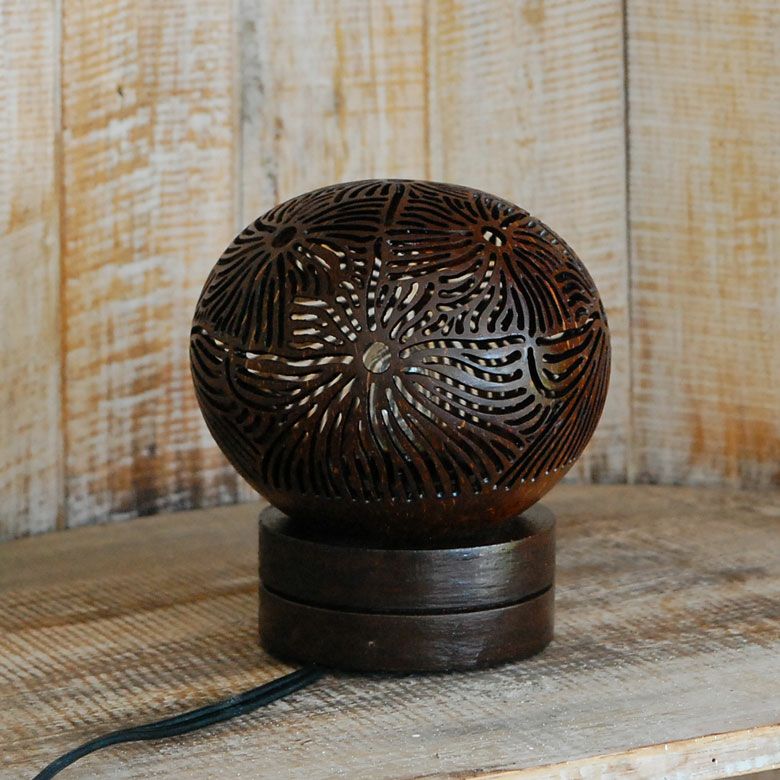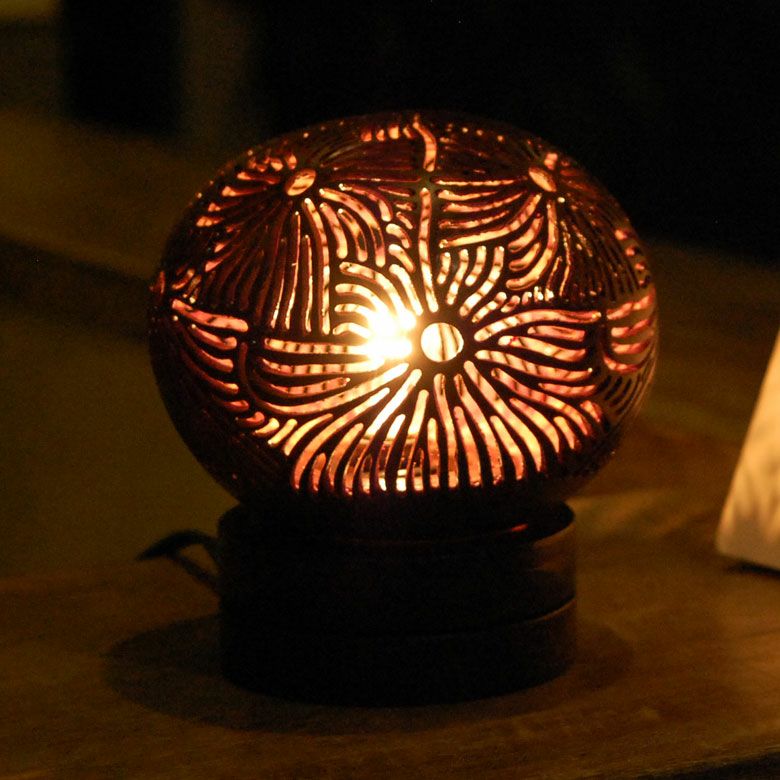 アジアン照明ならではの幻想的な光と影が浮き出るバリ島の人気アジアンランプ ココナッツボールランプ フラワーモチーフ アジアンランプ ココナッツボール エスニック ライト ランプ 照明 おすすめ おしゃれ テーブルランプ 間接照明 バリ 癒し アジアンリゾート アジア雑貨 アジアン雑貨 [12730]
