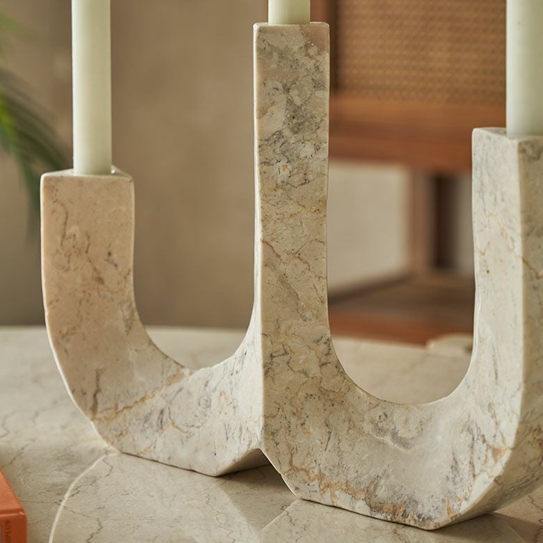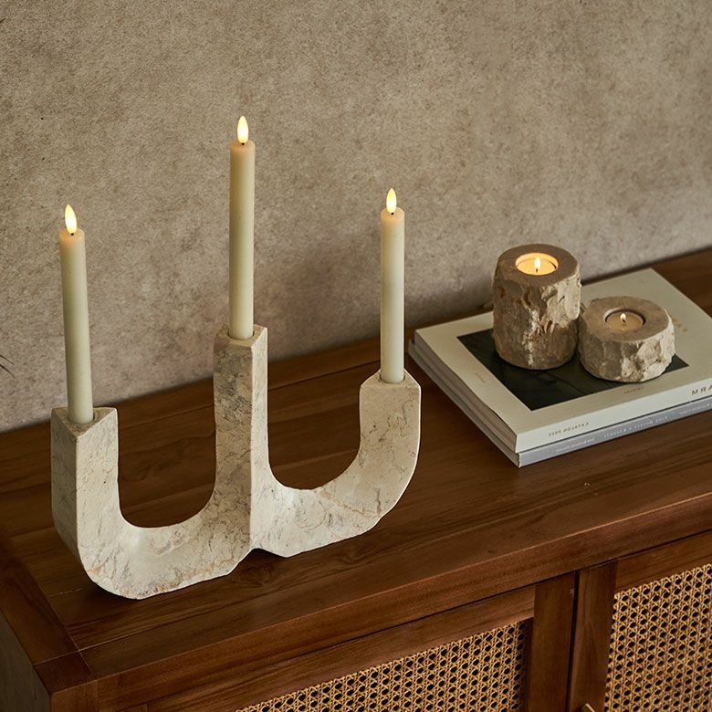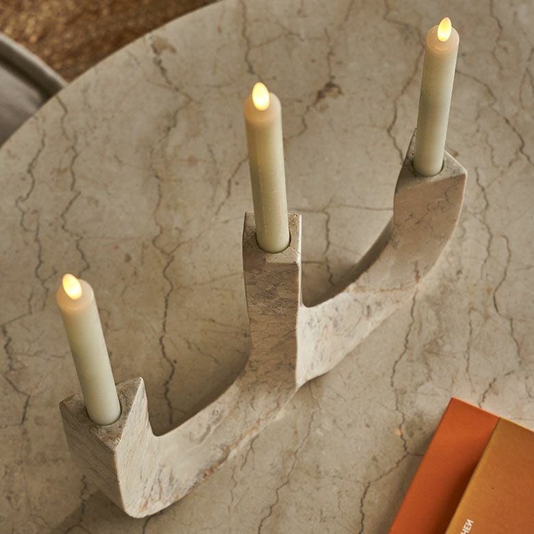 天然素材の大理石からできたキャンドルホルダーは、エコフレンドリーな空間に調和します。