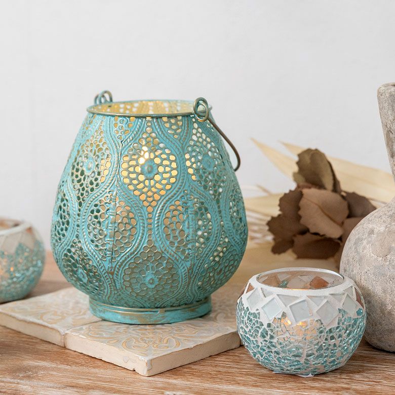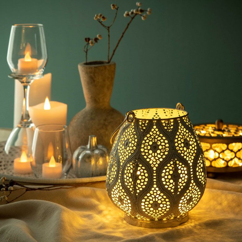 ころんとしたかわいらしいフォルムのアラベスク調ランタン。