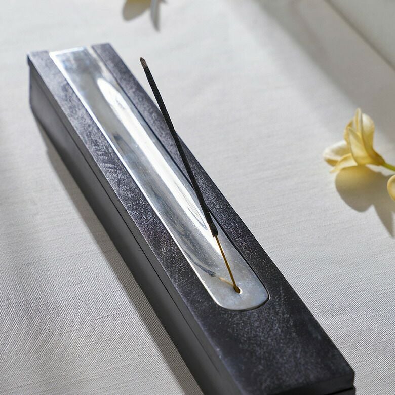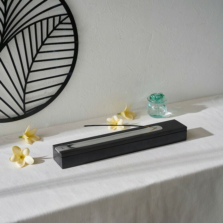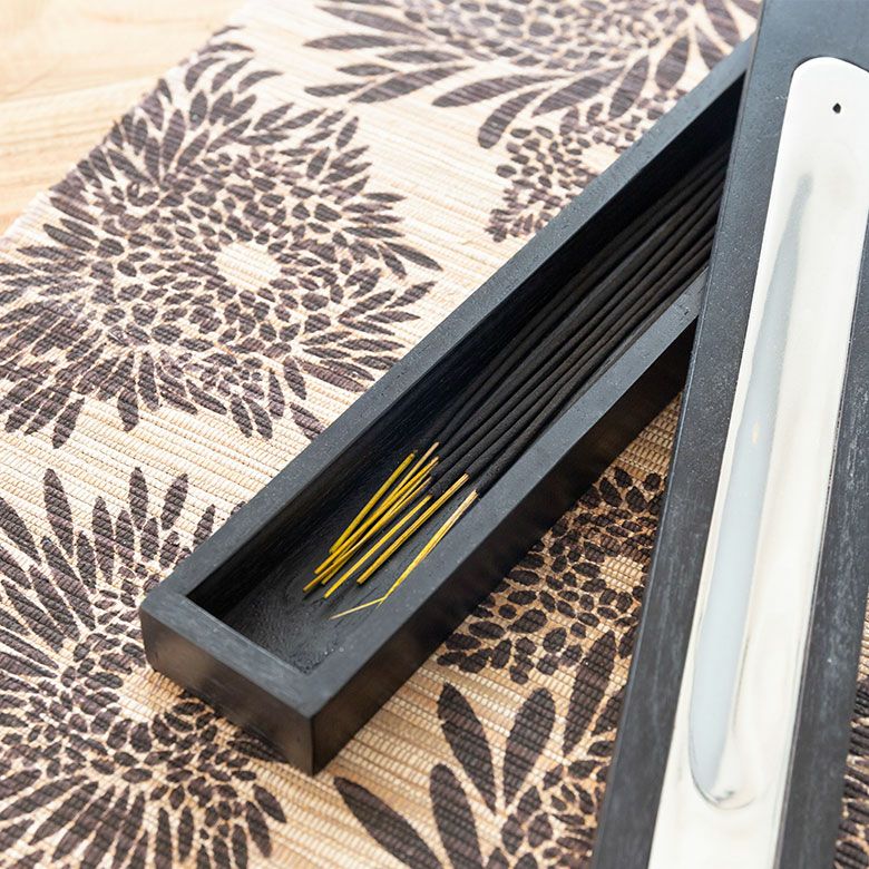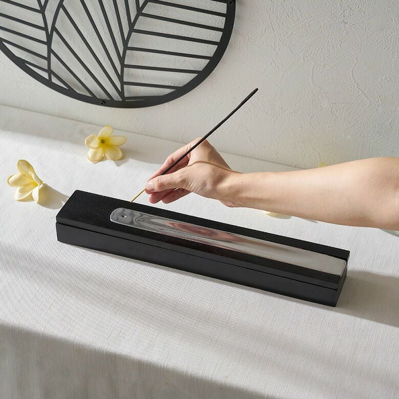 燃えたお香の灰は下のアルミトレイに落ちる仕組みで、お手入れも簡単です。