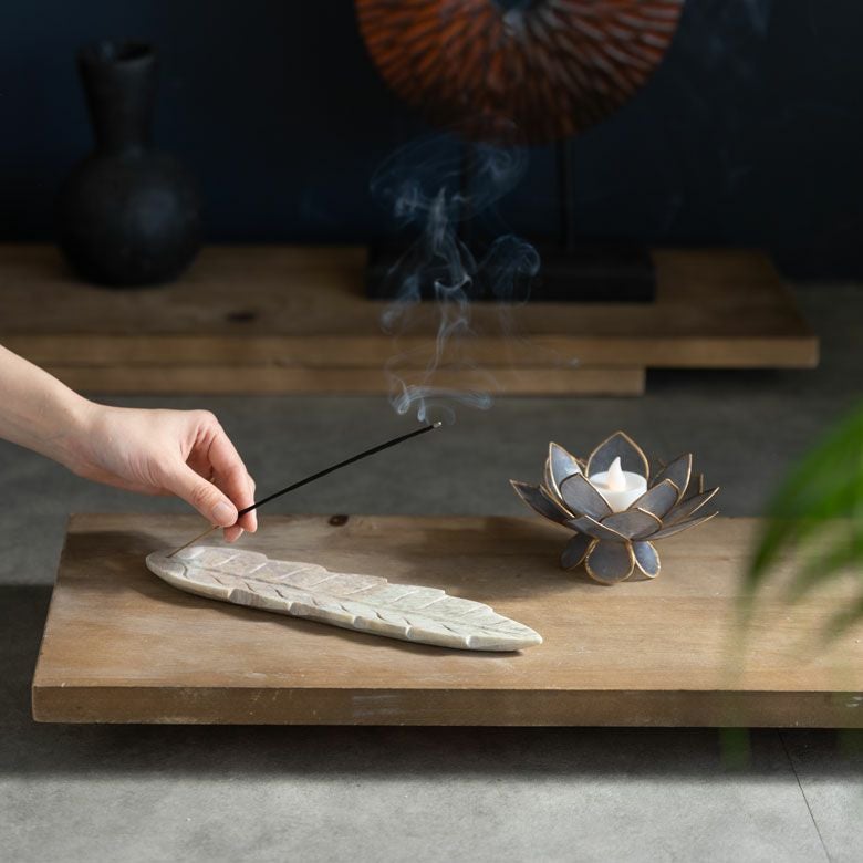 インドの職人によるオールハンドメイドのリーフ型お香立て。