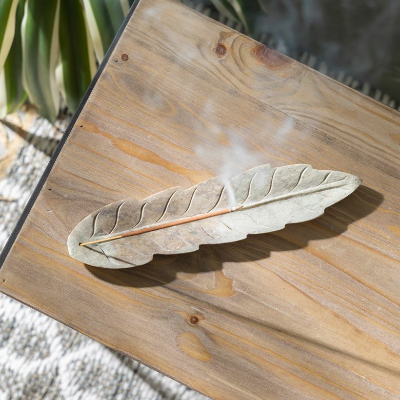 ソープストーンのリーフ型お香立て