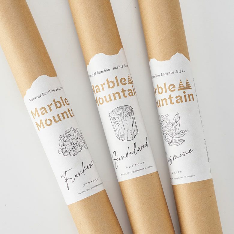 スタイリッシュなパッケージに入った、5種類の香りのバンブーインセンス。