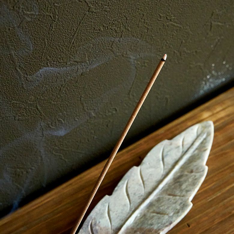 お香立てに挿して火を付ければ、そこが癒しの空間に。