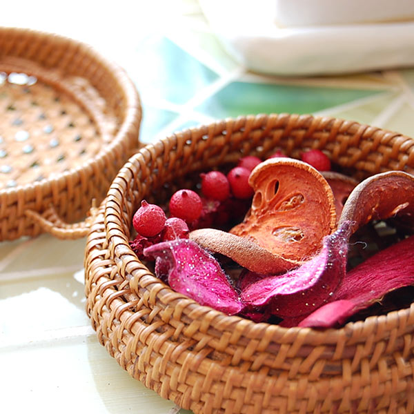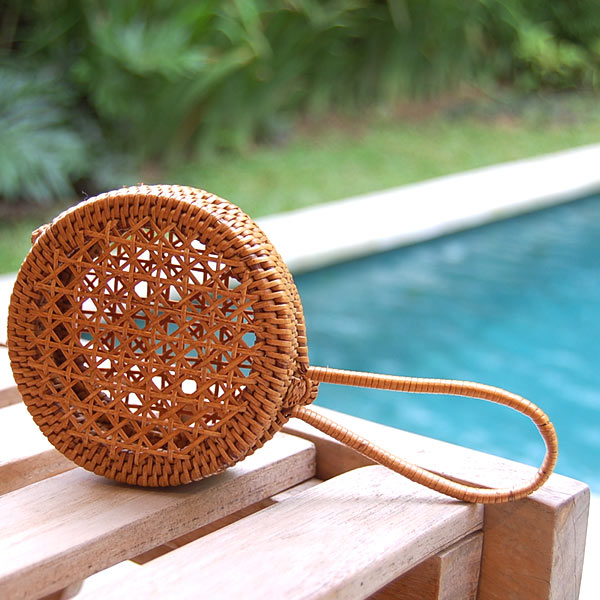 バリ島のトゥガナン村でひとつひとつ手作りのアタ製ポプリケース。