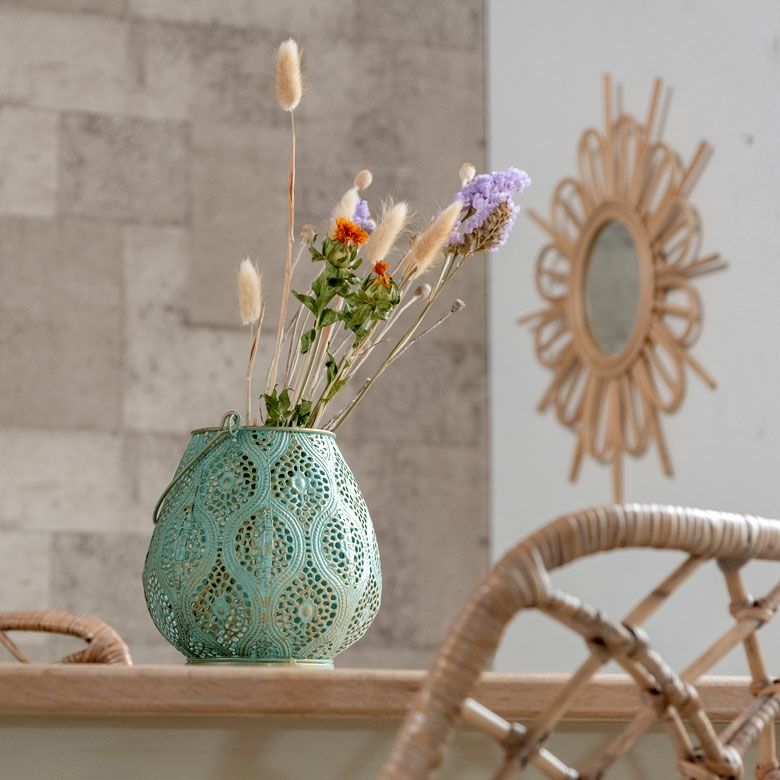 吊り下げ ハンドル付き スタンド 玄関 寝室 キャンドルホルダー キャンドル ランタン ライト アラベスク ブルー ホワイト ブラック W 約16.5cm D 約17cm H 約17.5cm ランプ 照明 フラワーベース フレンチ モロッカン アンティーク風 おしゃれ かわいい ホテル リゾート BOHO アジアン アジア 雑貨 [66982]