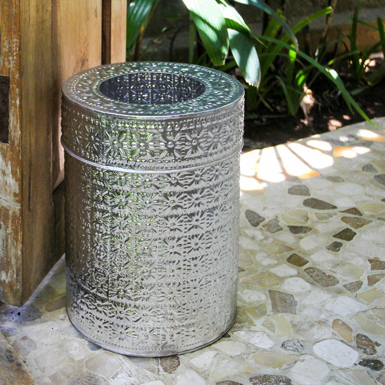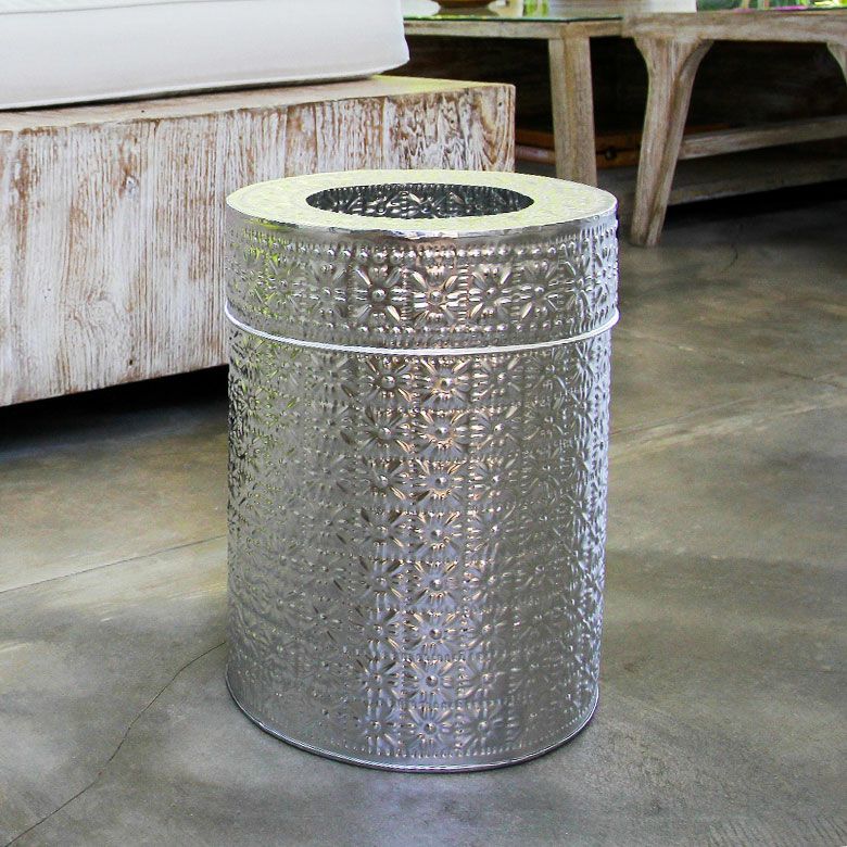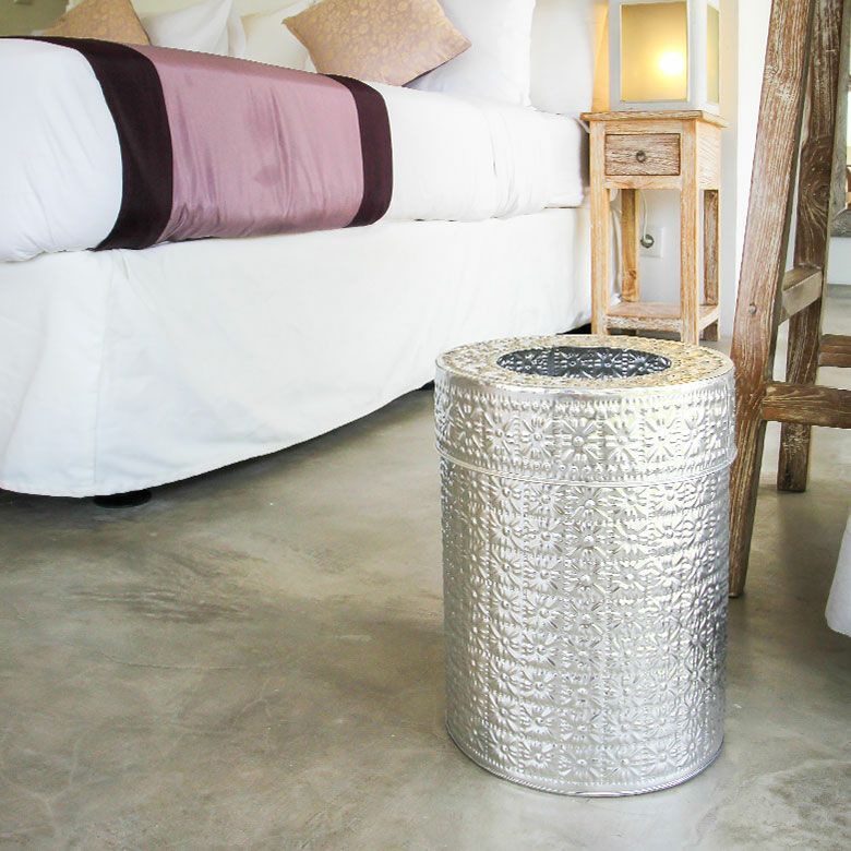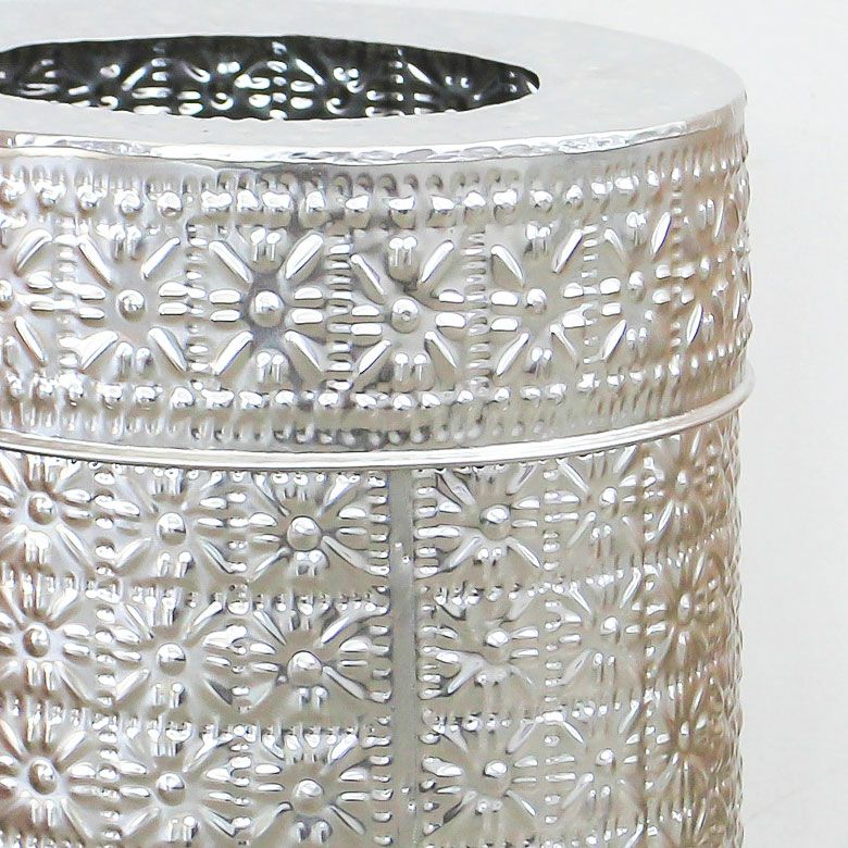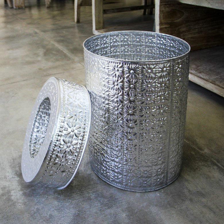 アジアンな模様が全面に施された、アルミのダストボックス。