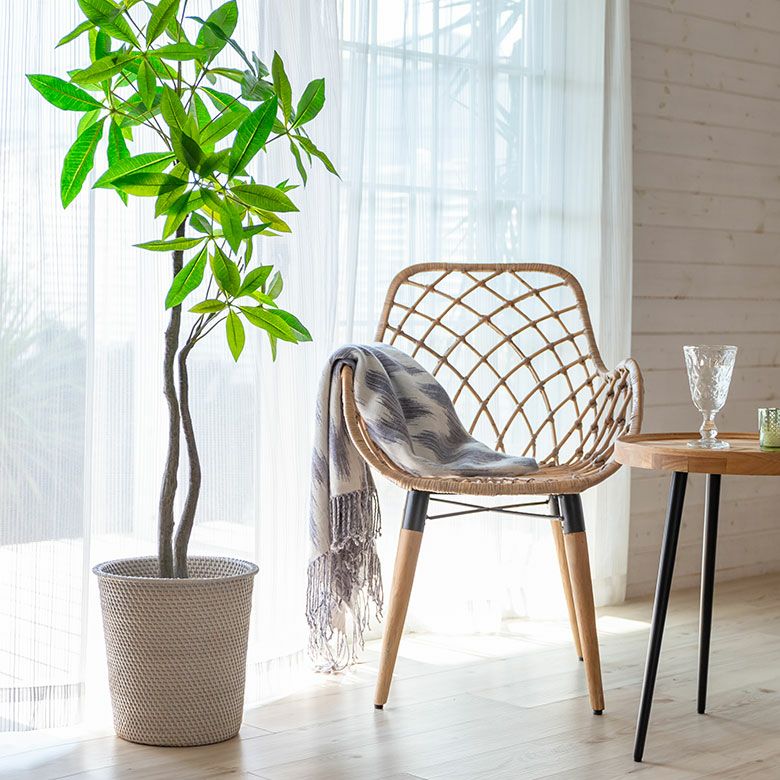 ラタンの素材感を活かしたナチュラルは、リゾートインテリアや植物とも相性抜群。