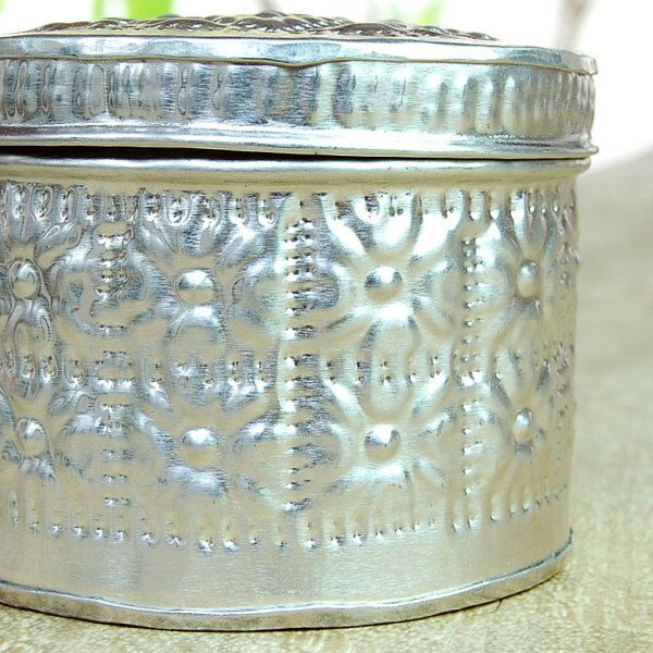アジアンな模様が全面に施された、アルミの小物入れ。