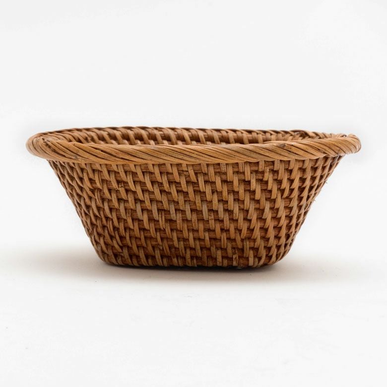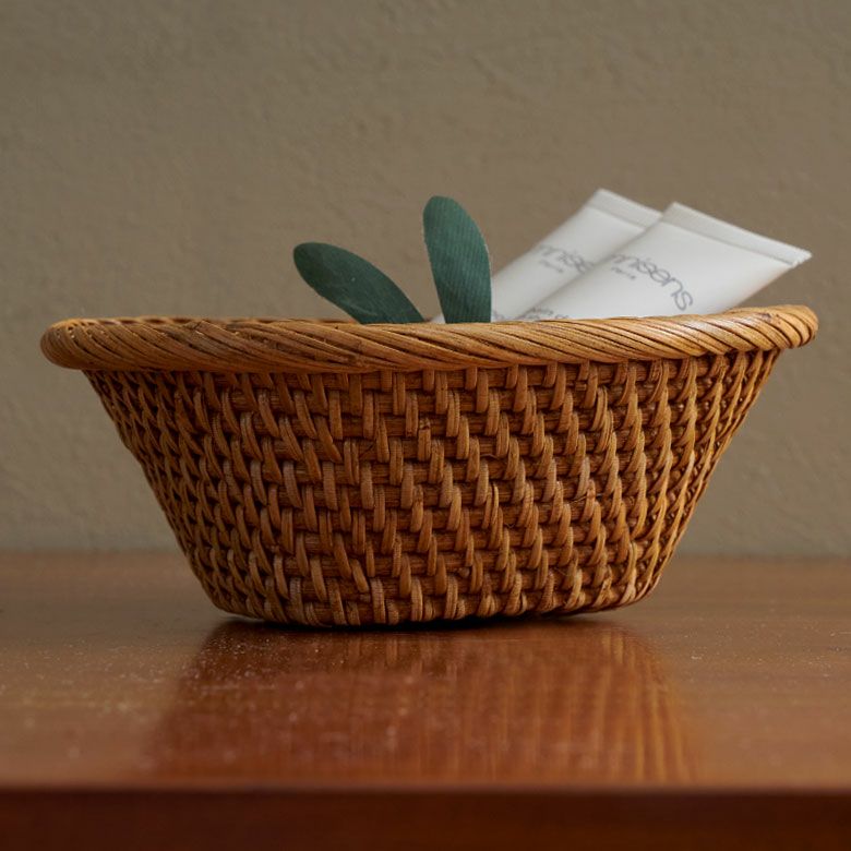 天然素材『ラタン』のみを使用して、編みあげた小物入れバスケットは