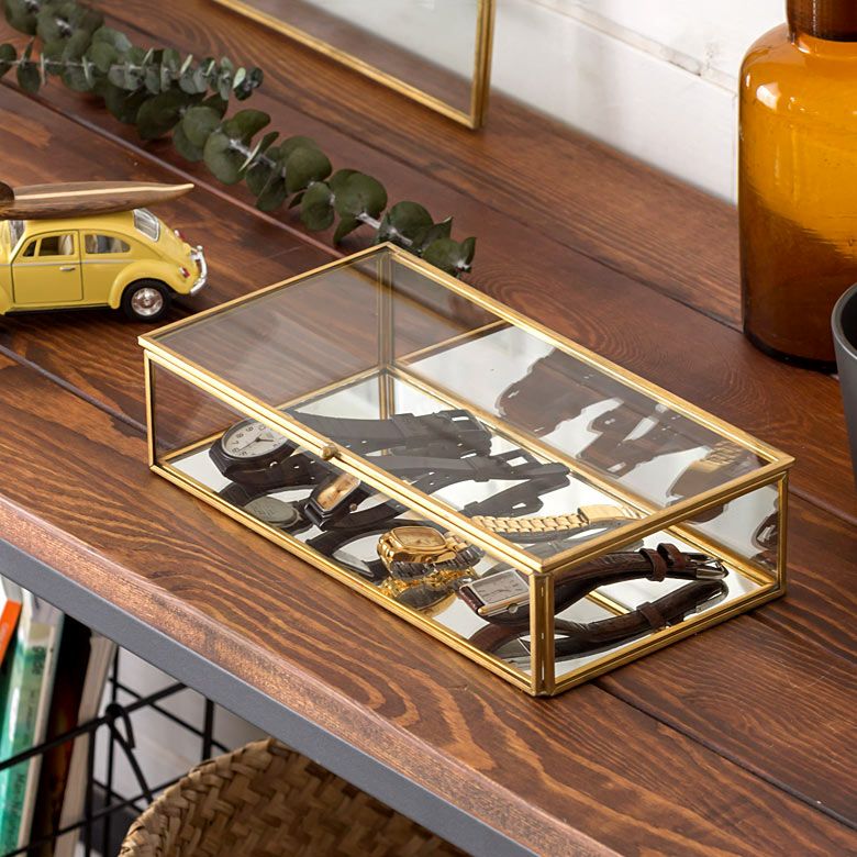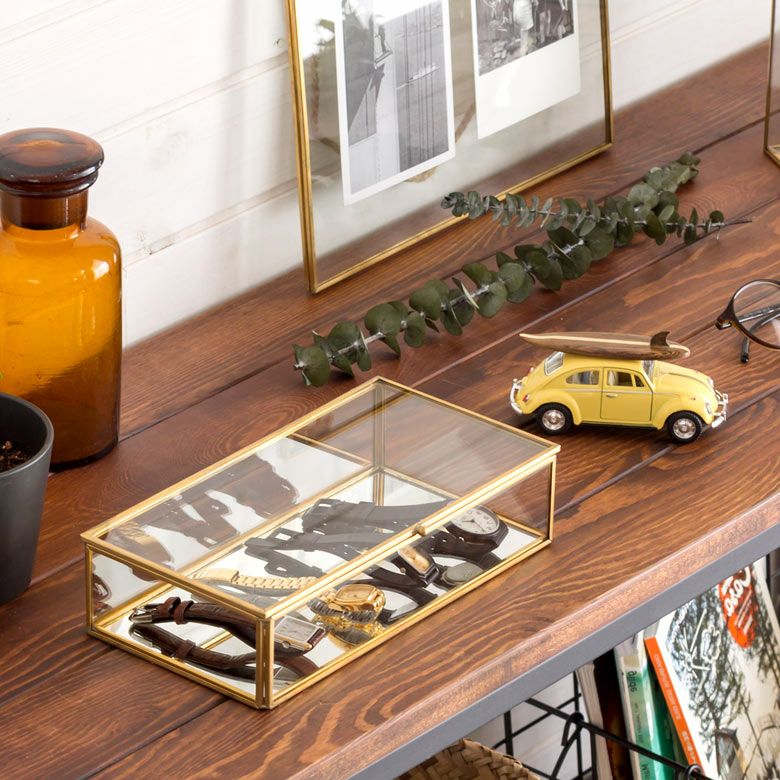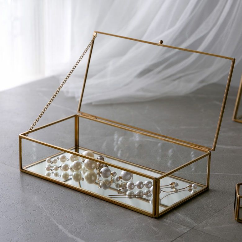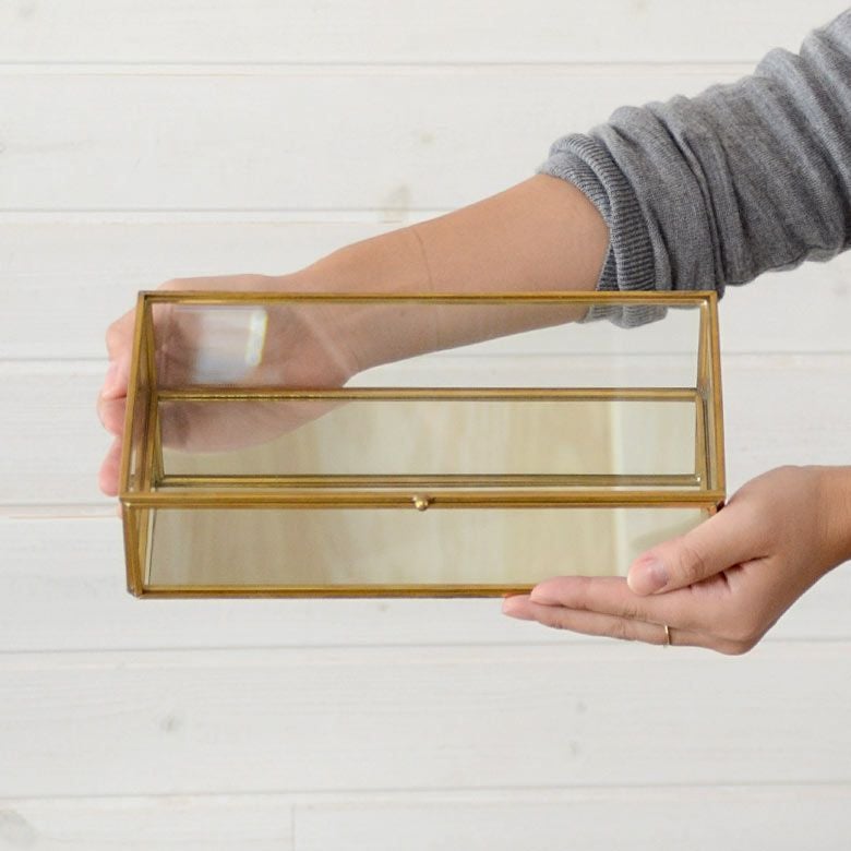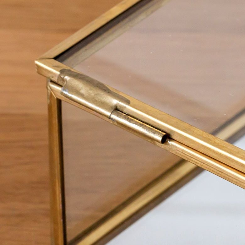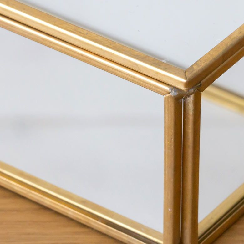 真鍮製フレーム。側面と上面はガラス張り、底面はミラーです。