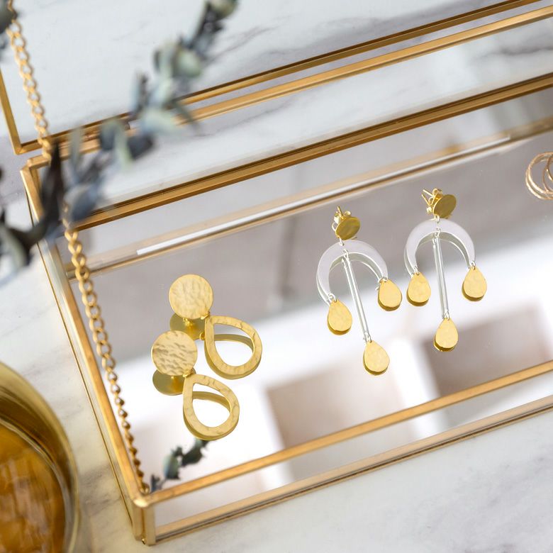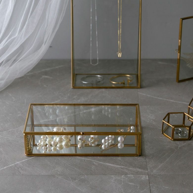 落ち着いたゴールドの真鍮フレームとガラスでできた