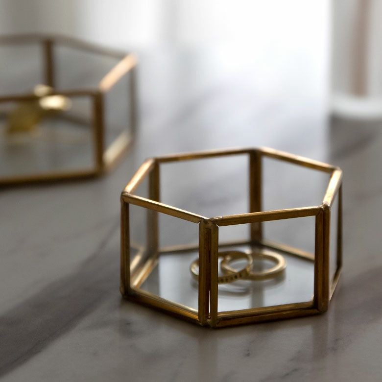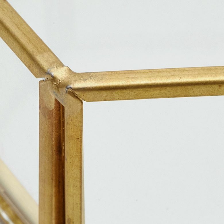 落ち着いたゴールドの真鍮フレームとガラスでできた