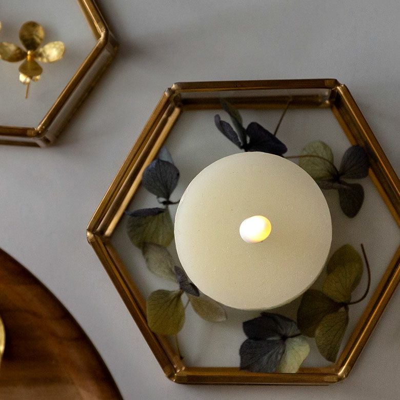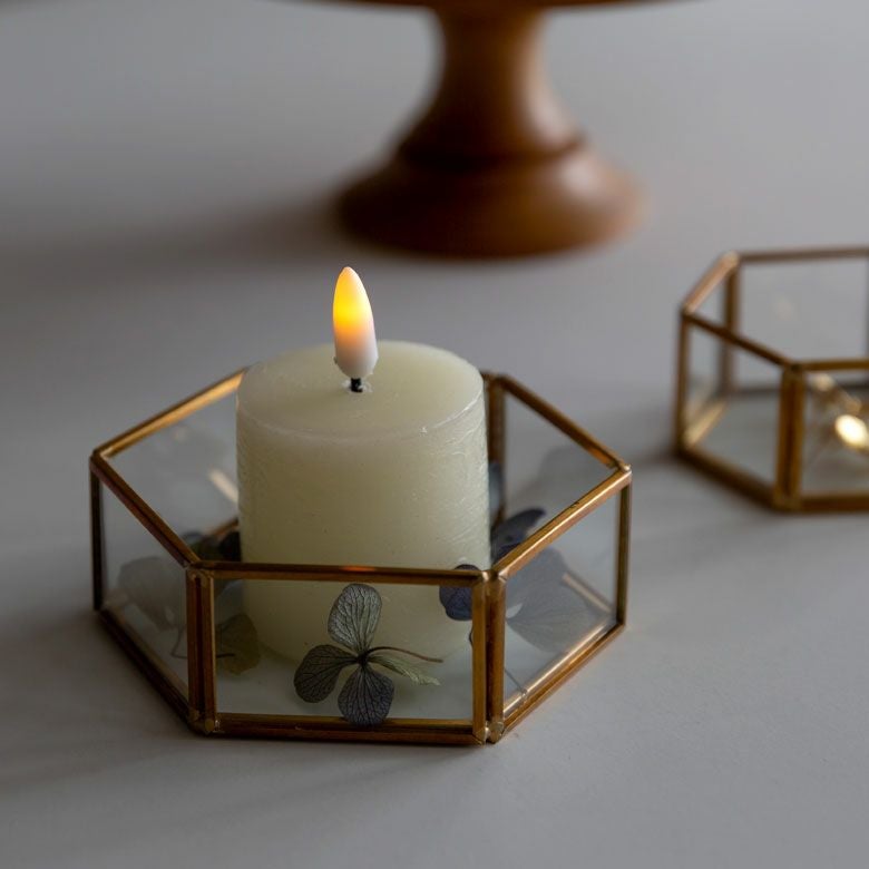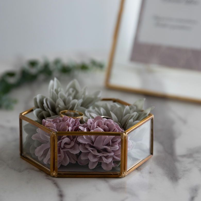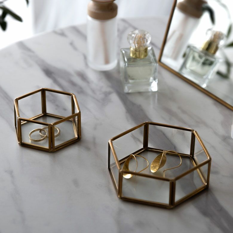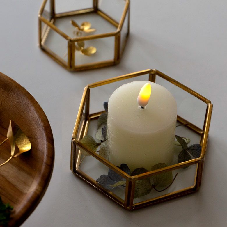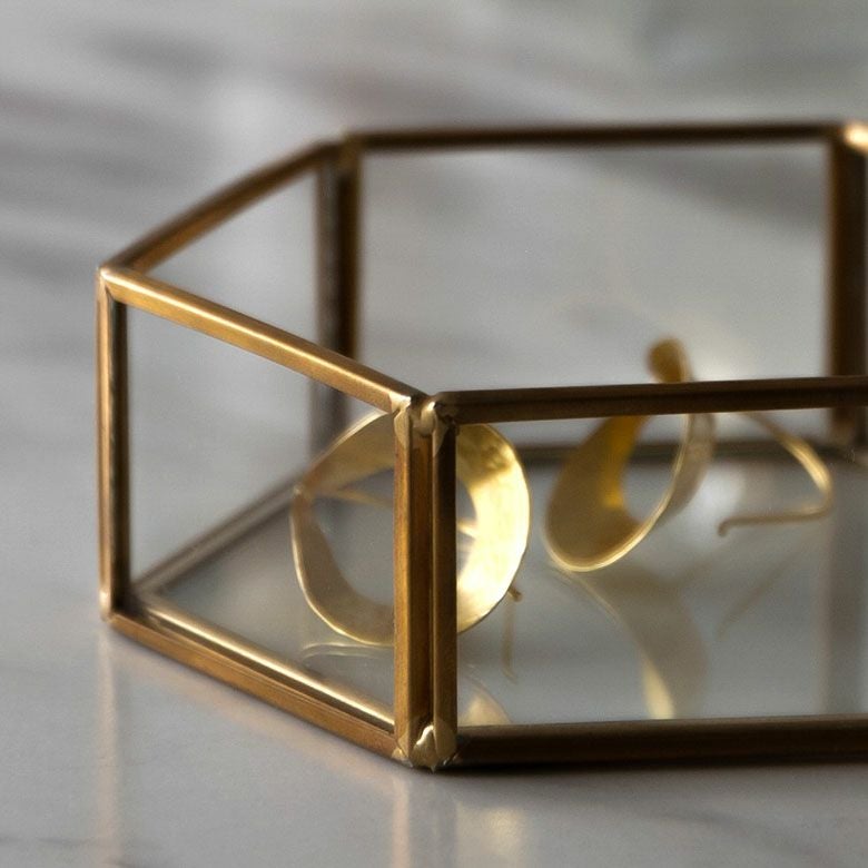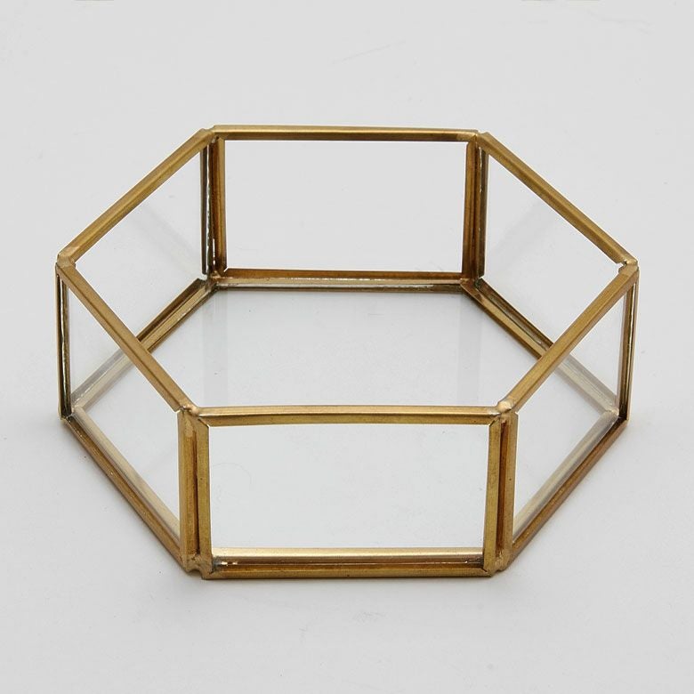 六角形の真鍮製フレームで、側面と底面はガラス張りです。