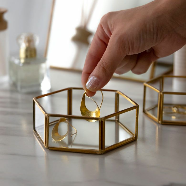 落ち着いたゴールドの真鍮フレームとガラスでできた
