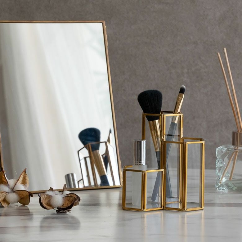 ガラスの透明感とゴールド色のフレームが上品で落ち着いた印象の