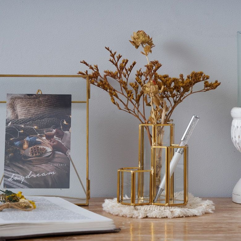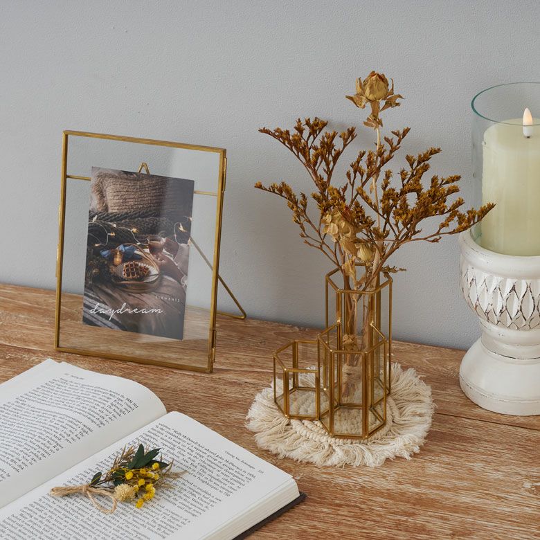 ドライフラワーを飾るフラワーベースとしてもおすすめです。(水は入れられません)