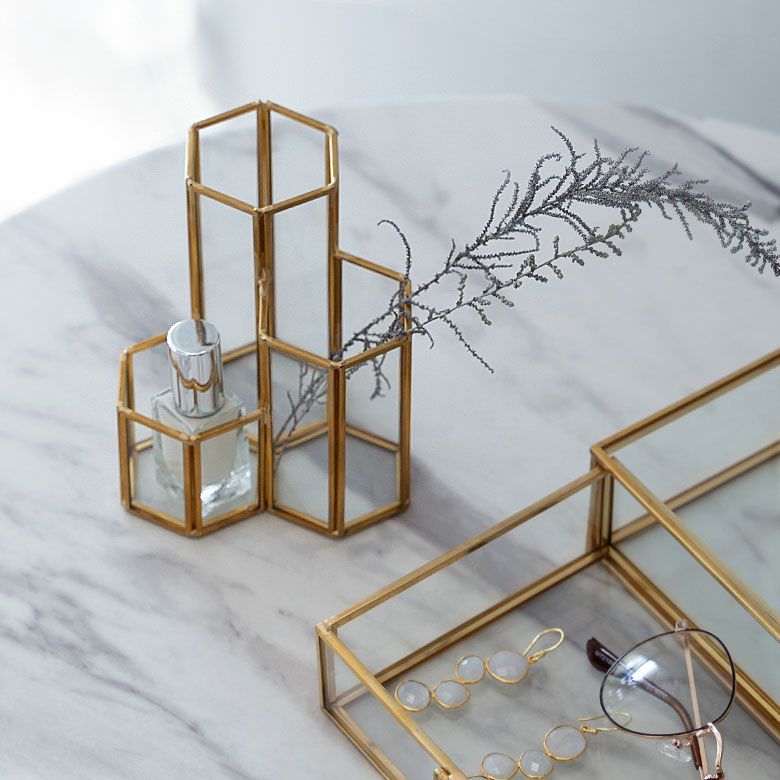 落ち着いたゴールドの真鍮フレームと、ガラスでできた