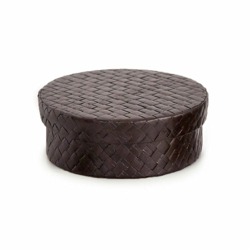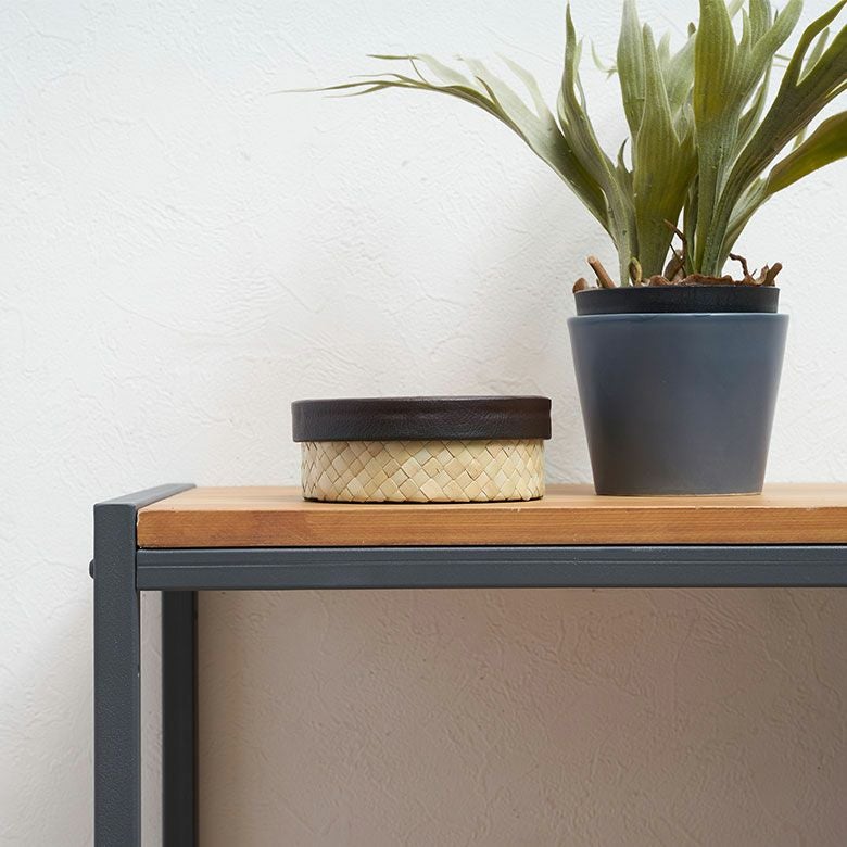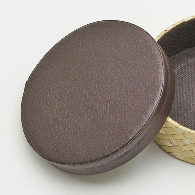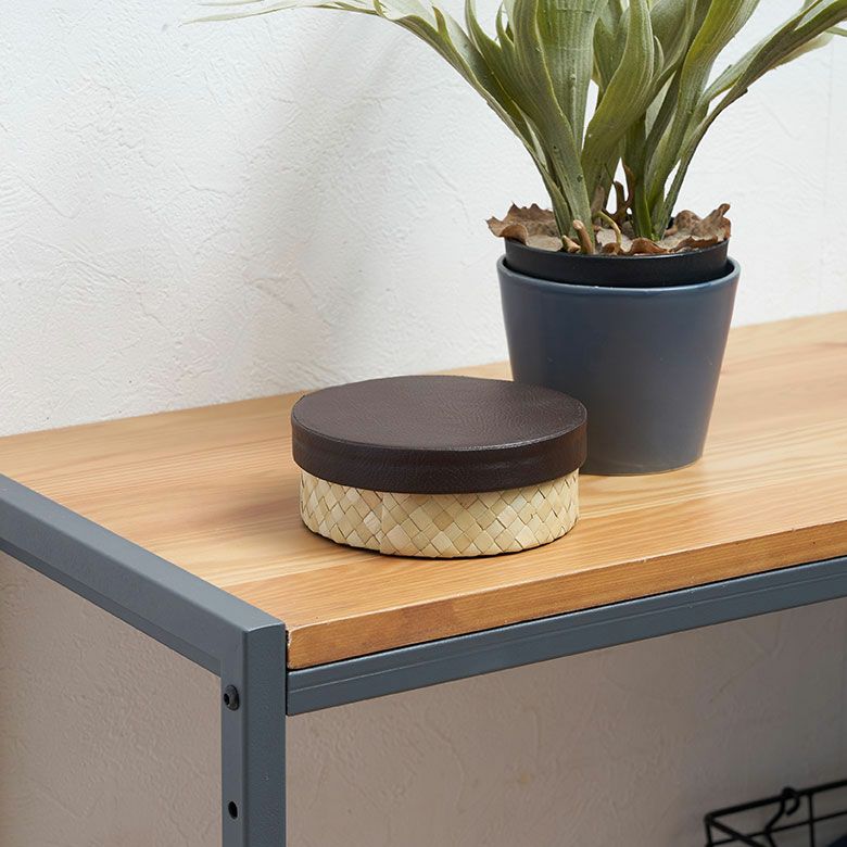 中身が見えにくいレザーのフタ付で、使い勝手の良い収納ボックス。