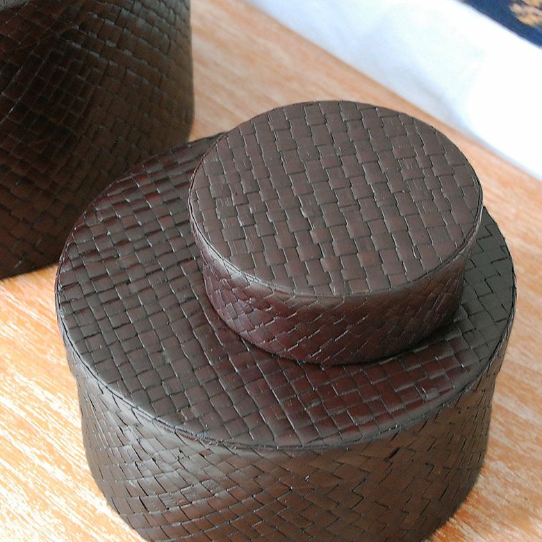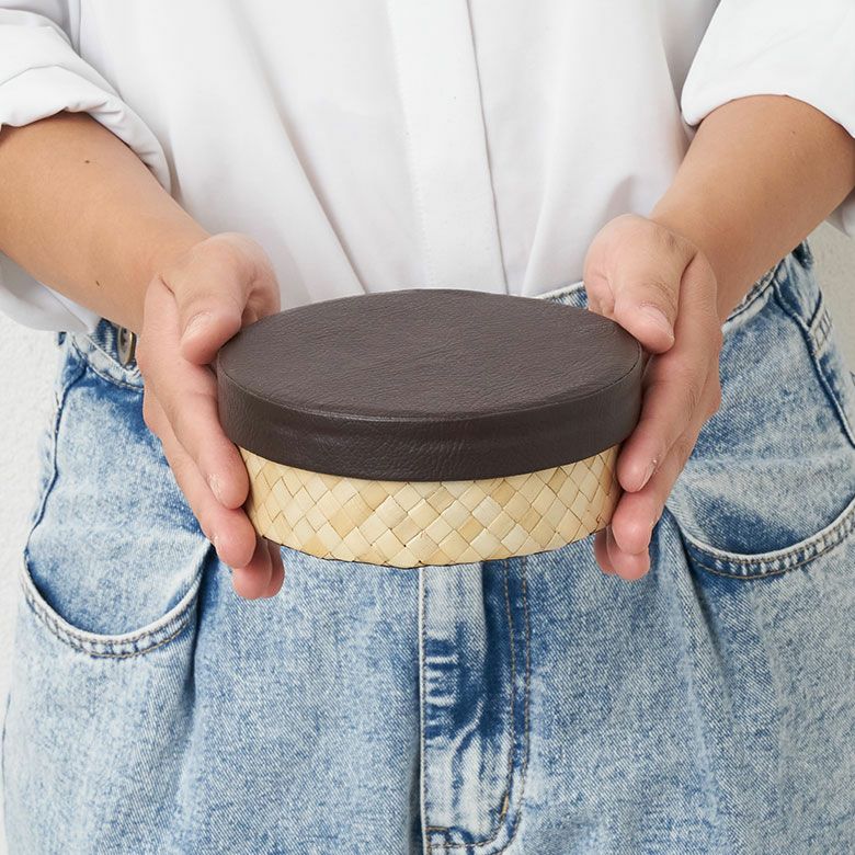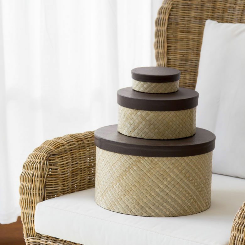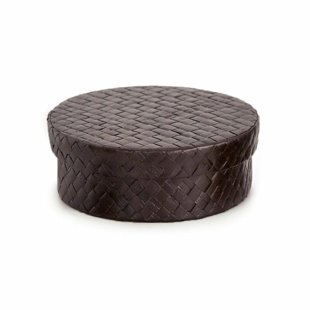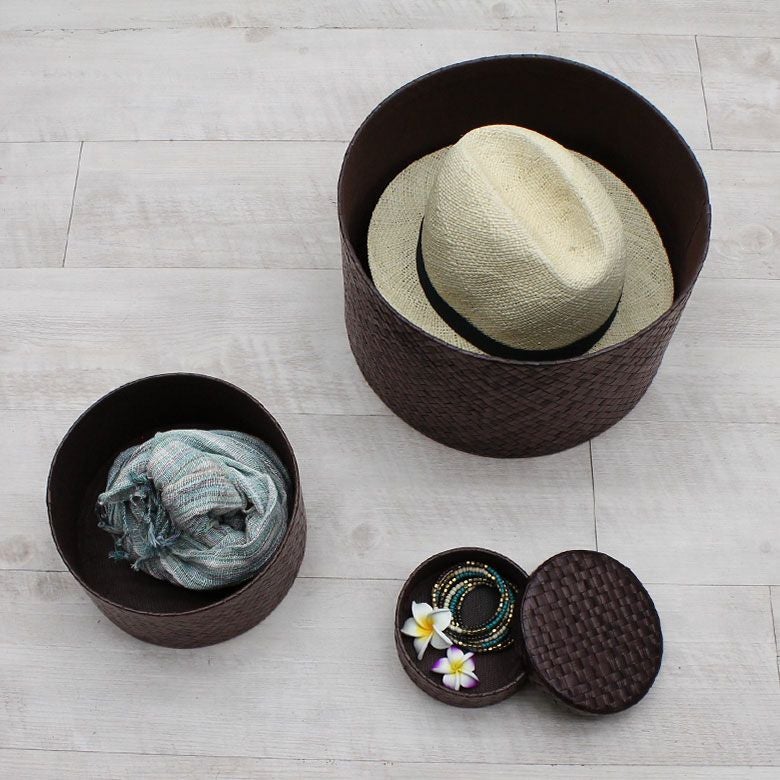 レザーのような編み目のアジアンボックス。おしゃれに小物を収納するバリ島の人気アジアン雑貨 パンダン製フタ付きラウンドボックス Sサイズ 2色展開 小物入れ 収納ボックス フタ付 整理ボックス 収納箱 インテリアボックス おしゃれ収納 バリ 雑貨 アジアン雑貨 バリ雑貨 入れ物 ナチュラル雑貨 蓋つき ふた付き 収納ケース 南国リゾート ハワイ [pb-1175]