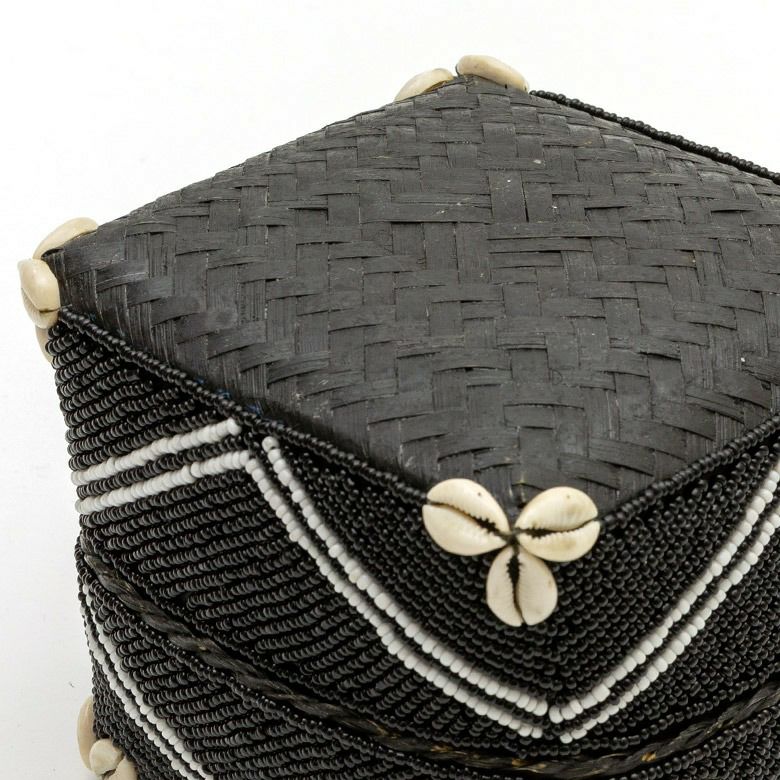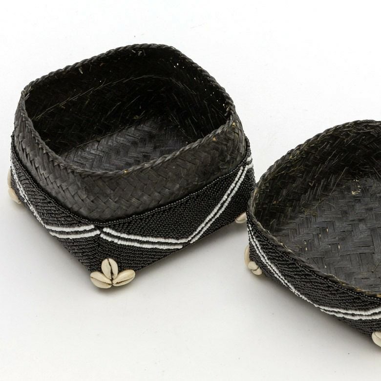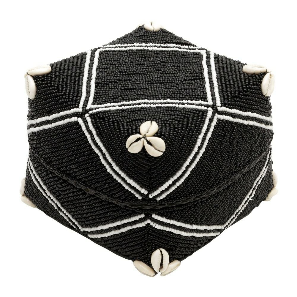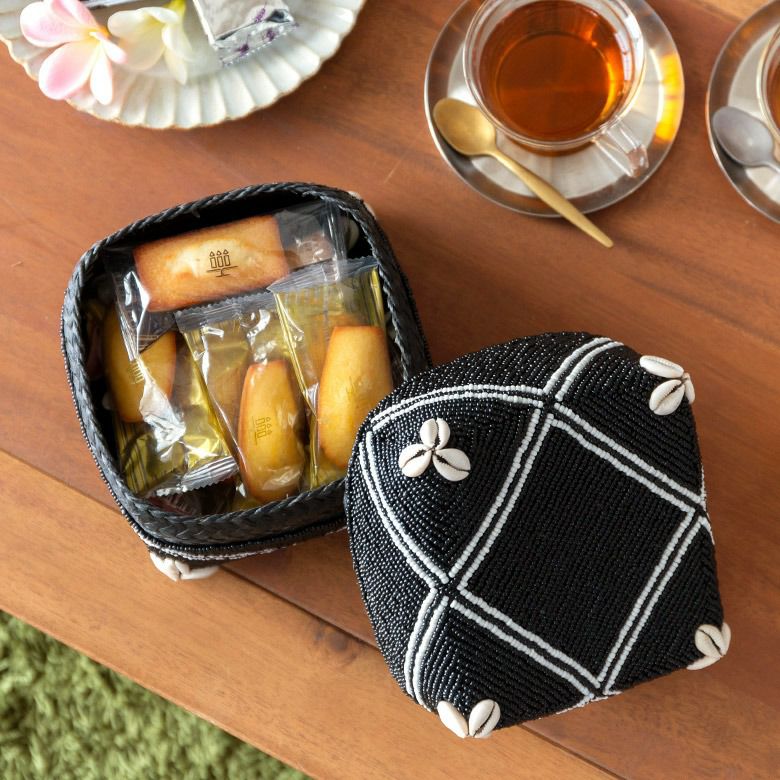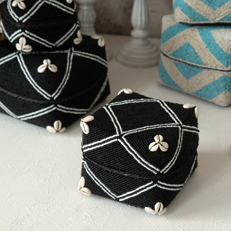 小物入れ 小物収納 アクセサリーケース フタ付き インスタ映え ソカシ ビーズ製 クロス柄 シェル付き 17×17cm ブラック [13533-m] 【 収納ケース 収納ボックス ギフトボックス 蓋付き 蓋付き収納 フタ付き ディスプレイ デコレーション ギフトボックス プレゼント おしゃれ 可愛い モノトーン アジアン雑貨 バリ島 バリ雑貨 リゾート 】
