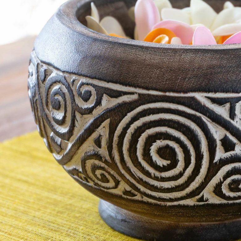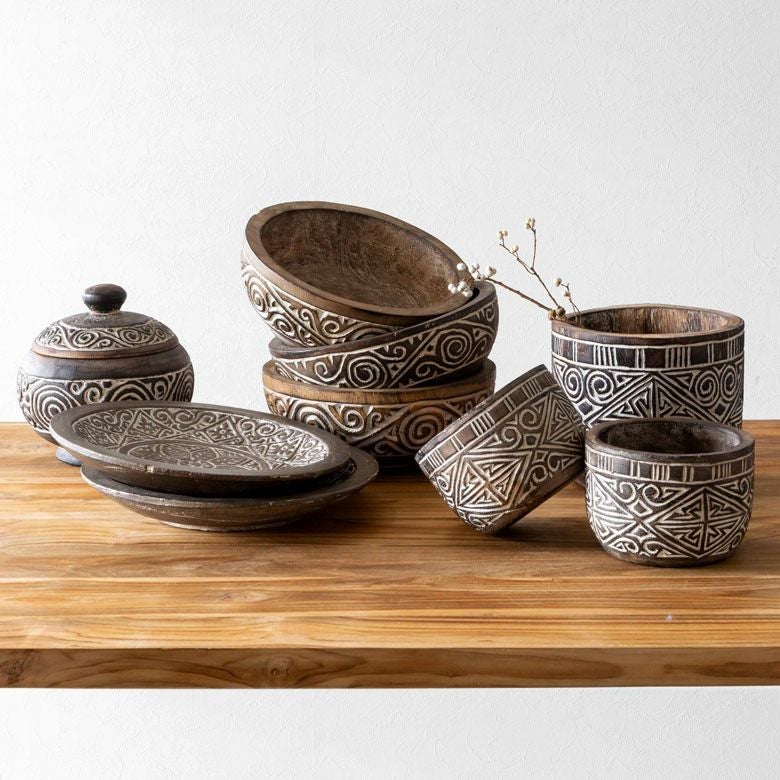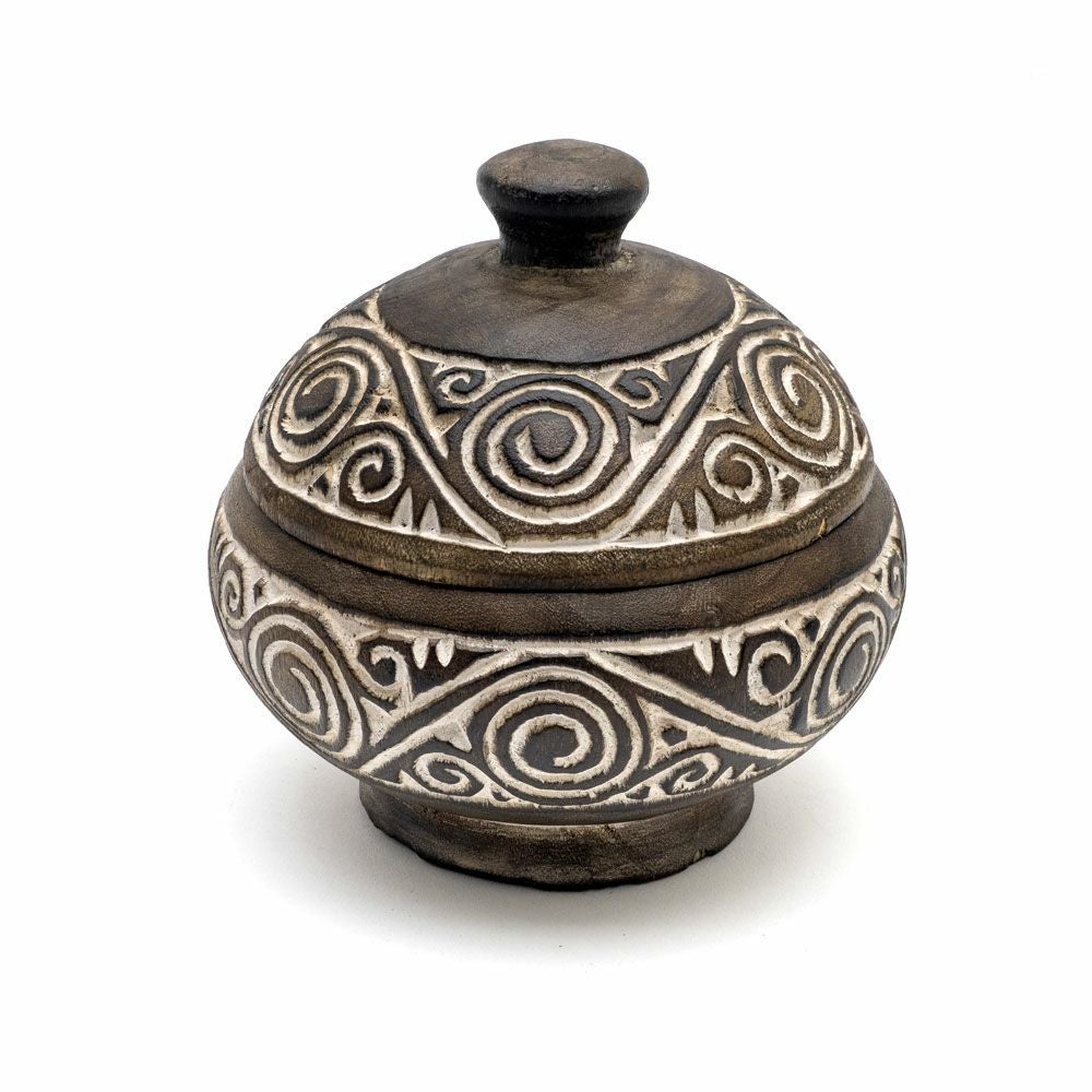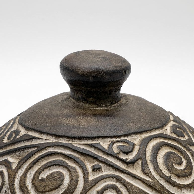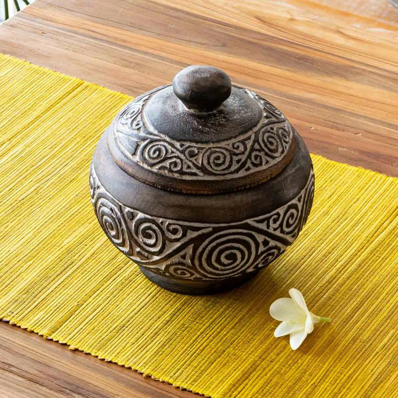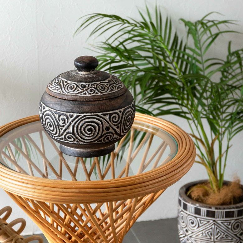 壺 つぼ BOHO エスニック アジアン 民族 トライバル アフリカン 小物入れ デコレーション ポット 木製 ウッド スンバ W 20cm D 20cm H 20cm [13942]【 ハンドメイド オブジェ 木彫り 彫刻 カービング 収納 雑貨入れ ボヘミアン コースタル モダン おしゃれ アジアン雑貨 リゾート バリ島 】