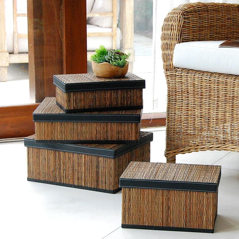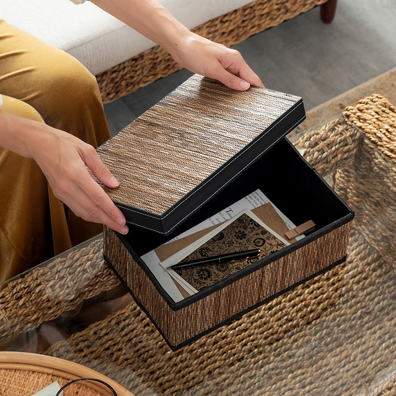 天然素材「パンダン」と「パームリディ」でできた収納ボックス。