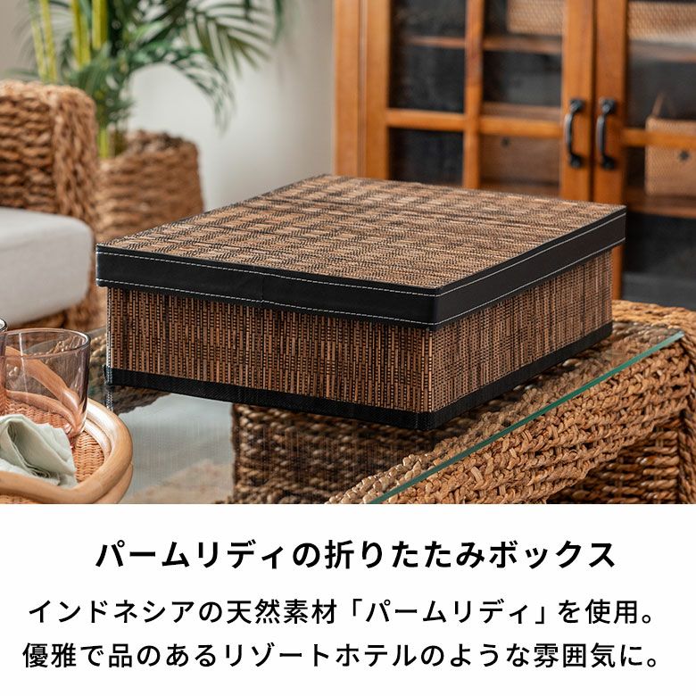 「パームリディ」という天然のヤシの葉の葉脈で作られています。 素朴さと、落ち着きのある上品さを兼ね備えた雰囲気が魅力的な 素材。落ち着いた色合いで、アジアンだけでなく和風のお部屋に もとっても合います。