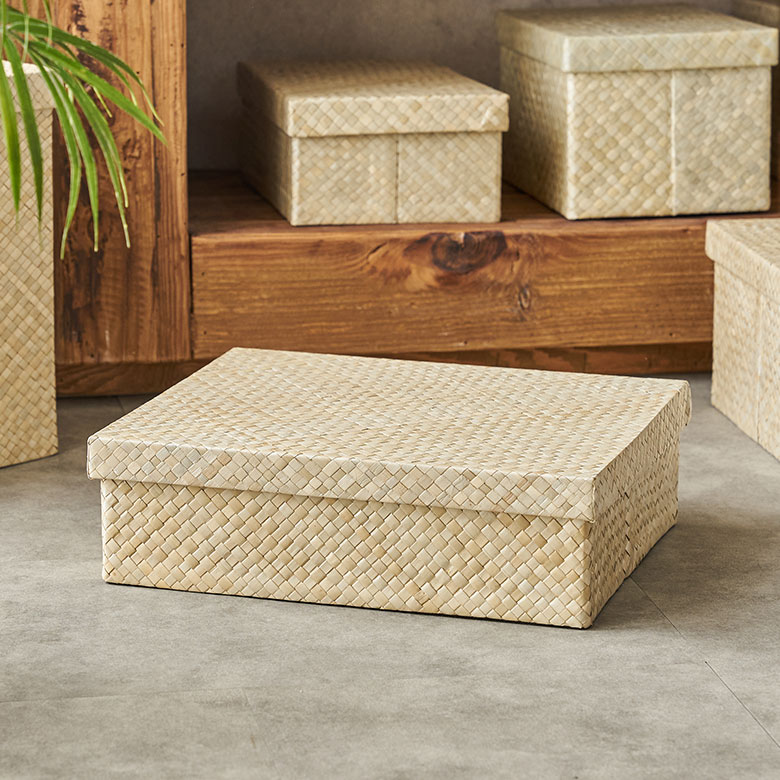 なんとこちら、バリ島のパンダン製ボックスを日本の仕様に合うようサイズ指定して作った、オリジナル品なんです!