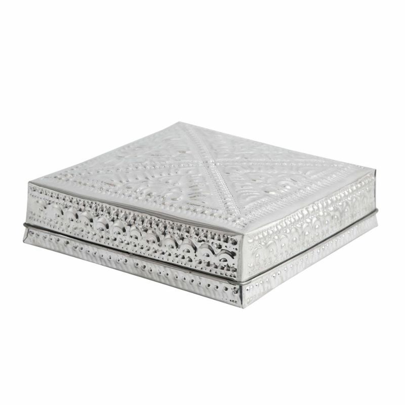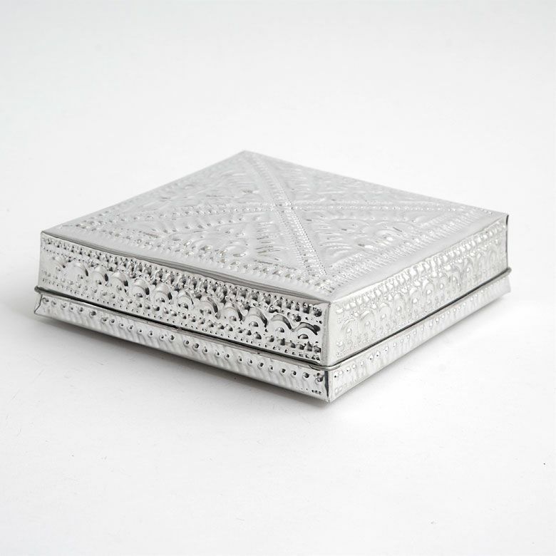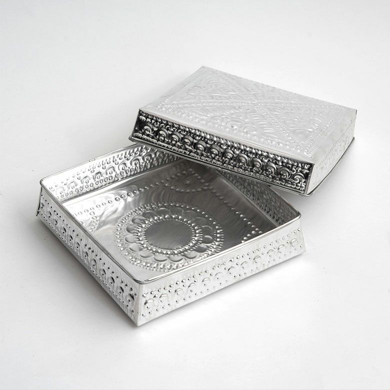 アジアンな模様が全面に施された、アルミの収納ケース。