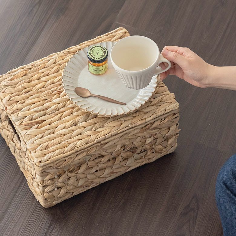 丈夫な作りなので、上にトレイなどを置いてちょっとしたテーブル代わりに。