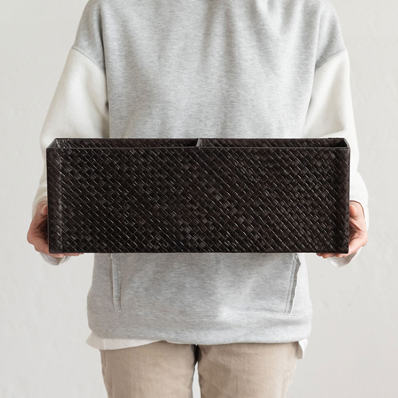一見レザーのような重厚感があり、生活感が出がちな日用品もエレガントに収納。