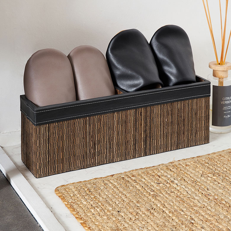 “パンダン”を使用した、仕切り付きスリッパラック。
