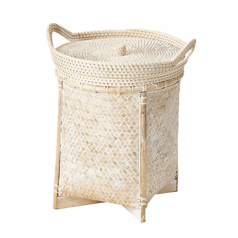 バンブーバスケットに、ラタン素材の蓋を組み合わせた