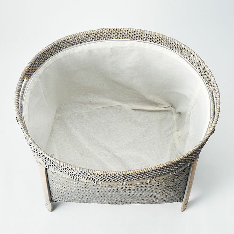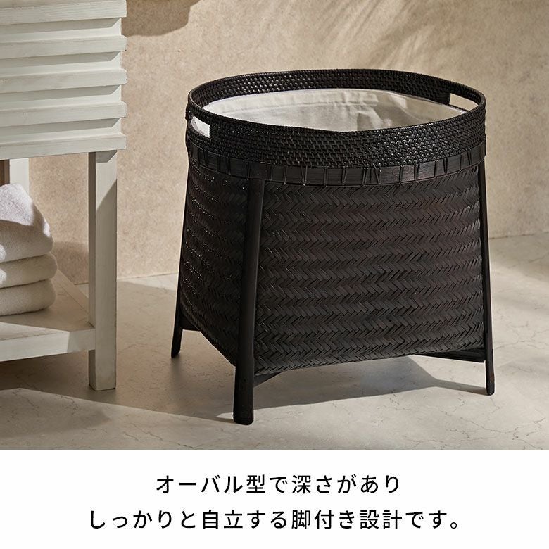 ラタンを組み合わせた、内布つきオーバルバスケット。
