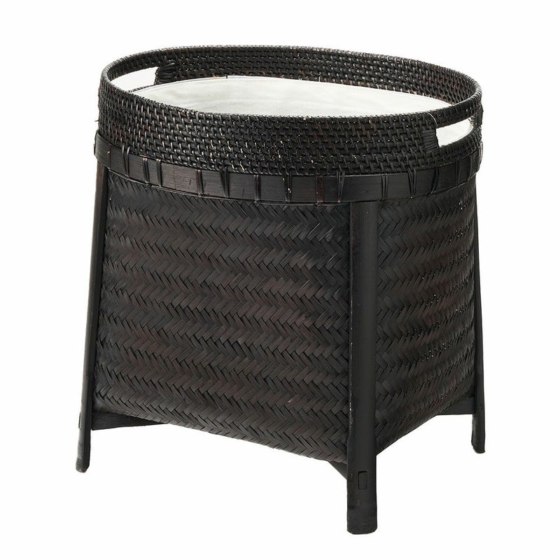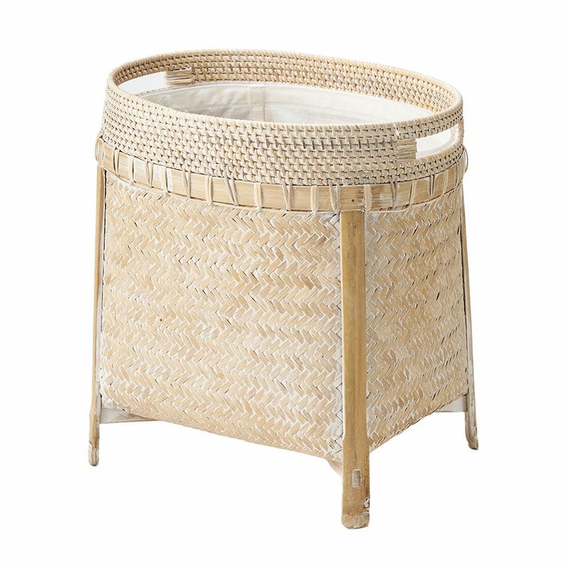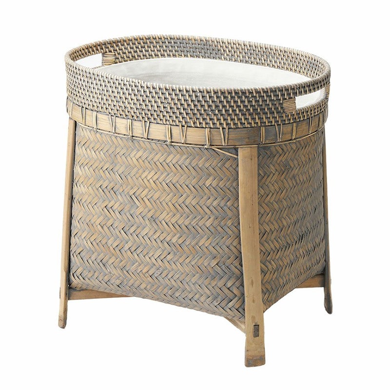 ラタンとバンブーの脚付オーバルバスケット
