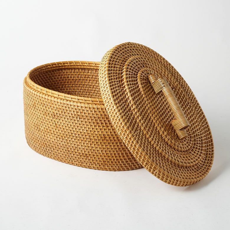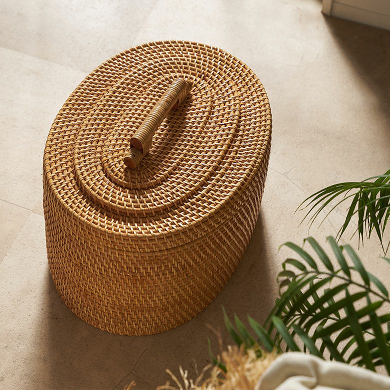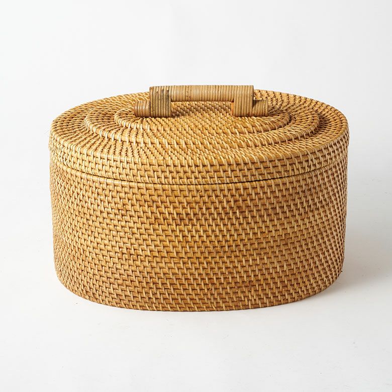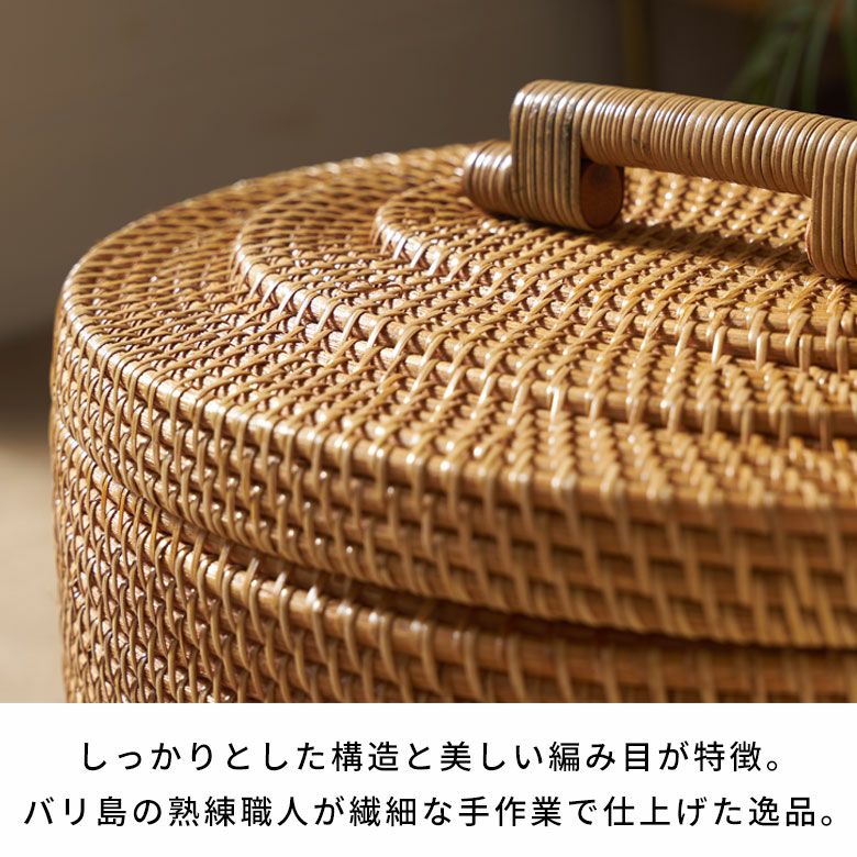バリ島の熟練職人による繊細な手作業でひとつひとつ作られた、ラタン製の収納バスケット。しっかりとした構造と美しい編み目が特徴で、他にはない個性的なデザインが魅力。