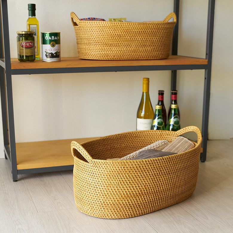 ・ラタンで作られたオーバル型バスケット