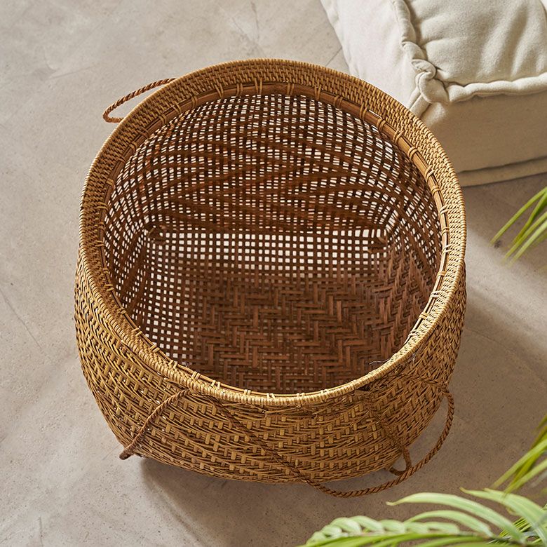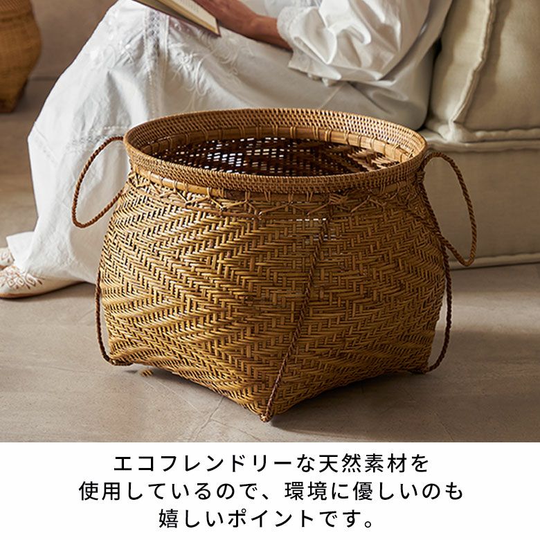 ・実用性と見た目の美しさを兼ね備えた、まさに民芸品と呼ぶにふさわしい佇まいの収納カゴ