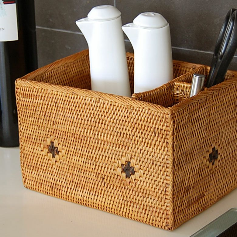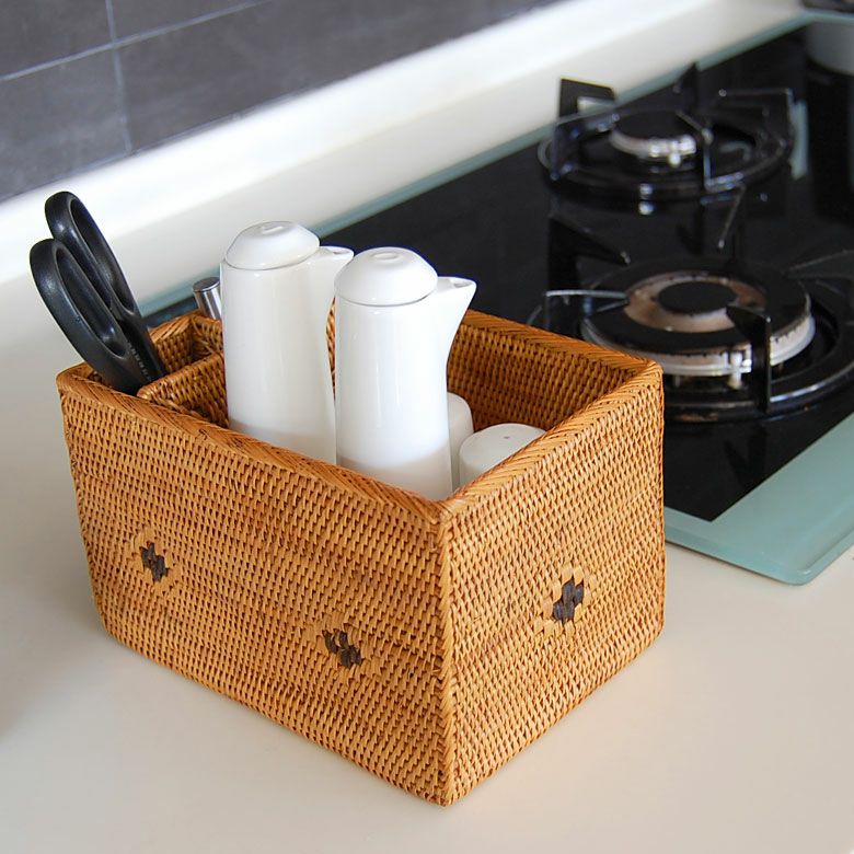 キッチンまわりに散らばる調理器具や調味料の瓶を入れるのにちょうどいい大きさ。
