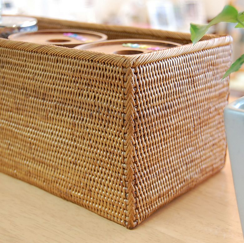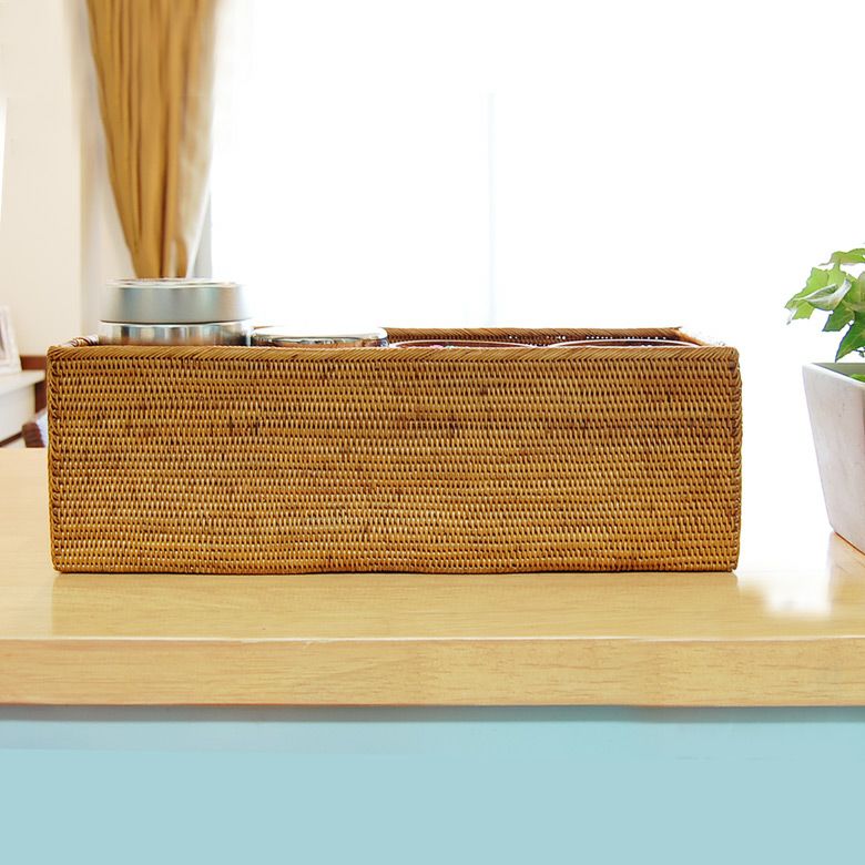 バリ島トゥガナン村の職人さんがひとつずつ丁寧に編んで作ったアタの小物入れケースは幅約37cmと大きめサイズ。 細長い形なのでキッチンに散らばる小瓶や調味料を並べて収納するのにもぴったり。 シンプルですっきりとしたデザインなの に存在感があるのは細かい編み目が美しいアタならでは。 美しい編み目もさることながら、 軽くて丈夫なので使い勝手も抜群なケースです。 あなたのアイデア次第で活用方法が広がります