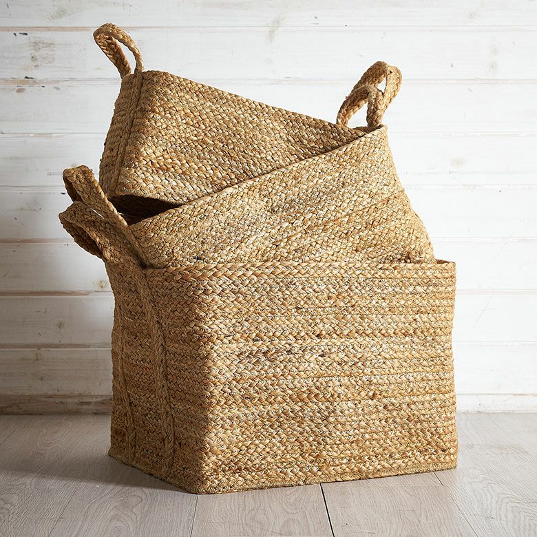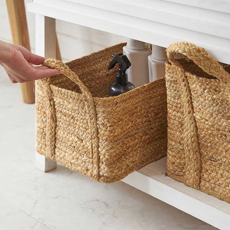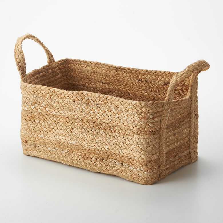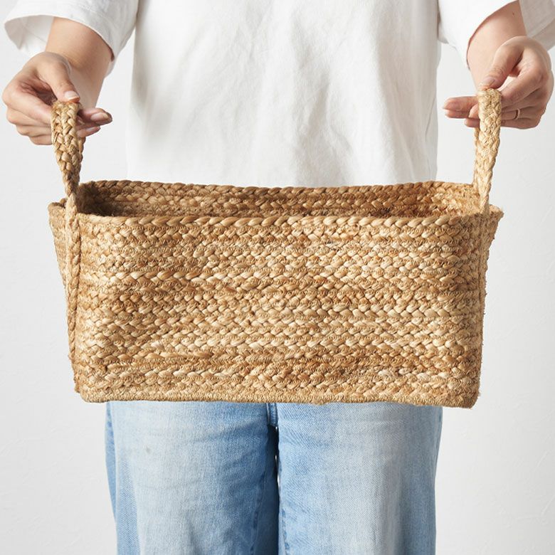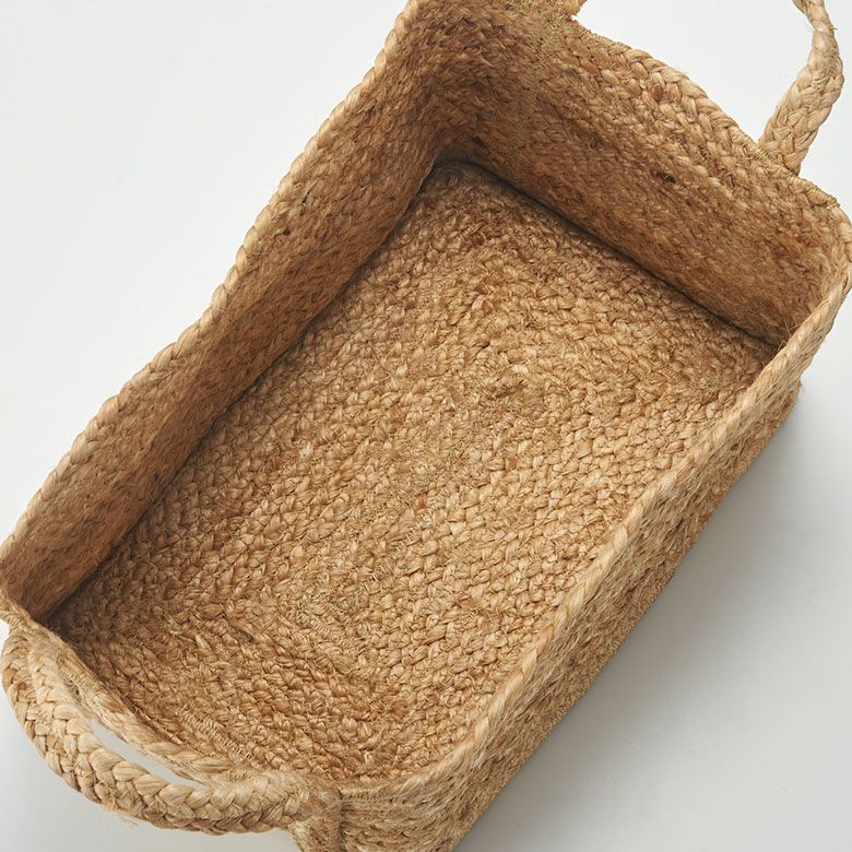 注目の天然素材ジュート100%使用、ナチュラルな風合いが魅力のバスケット。