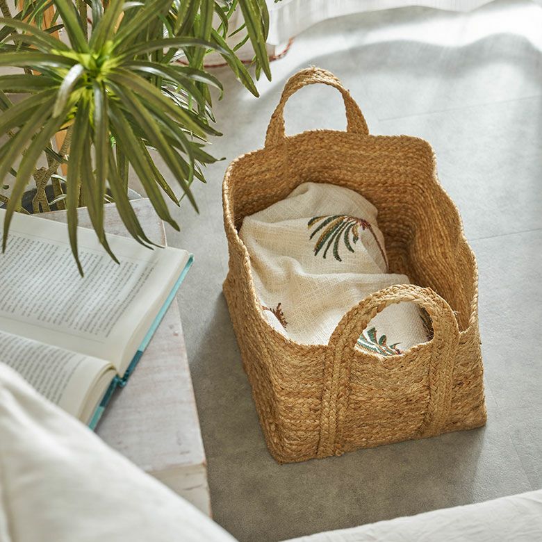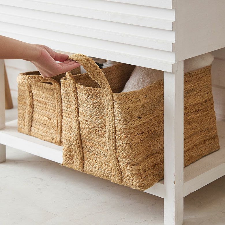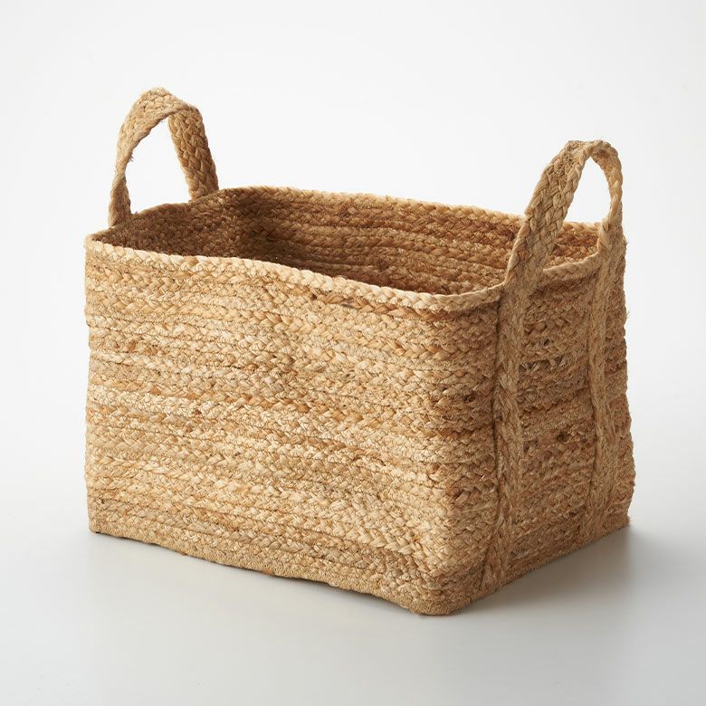 注目の天然素材ジュート100%使用、ナチュラルな風合いが魅力のバスケット。